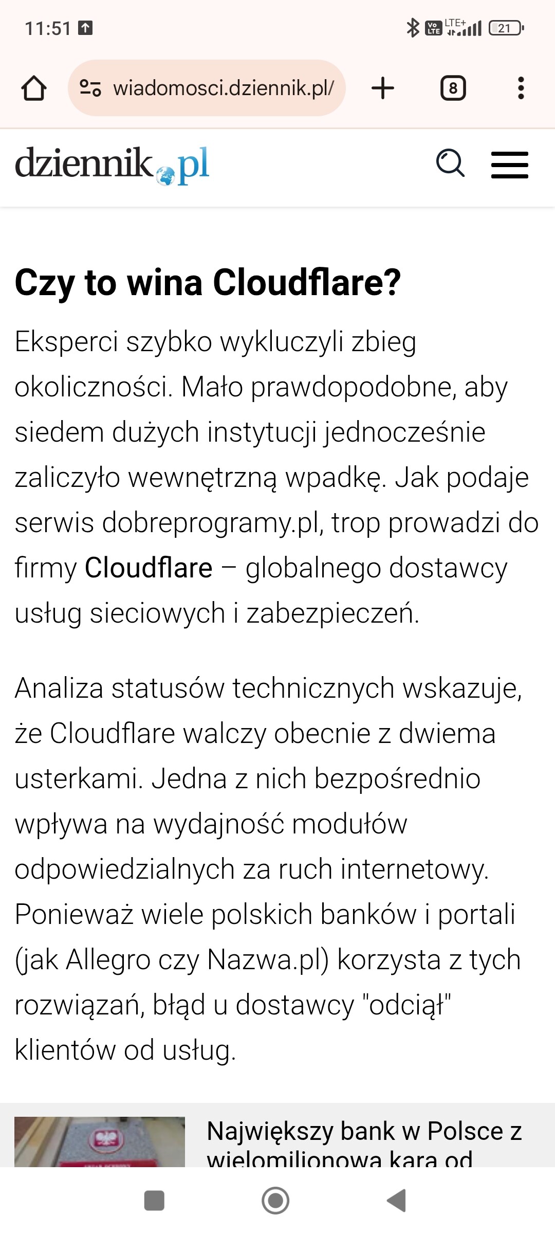 Dziewczyny czy działają wam aplikacje internetowe banków i strony banków? Mamy problem z koleżankami z pracy. Żadna nie może się zalogować na swoje konto ani zapłacić blikiem. Działają tylko karty. Wyczytałam że allegro też ma jakąś awarię i faktycznie bardzo długo się ładuje. Jak to i was jest?