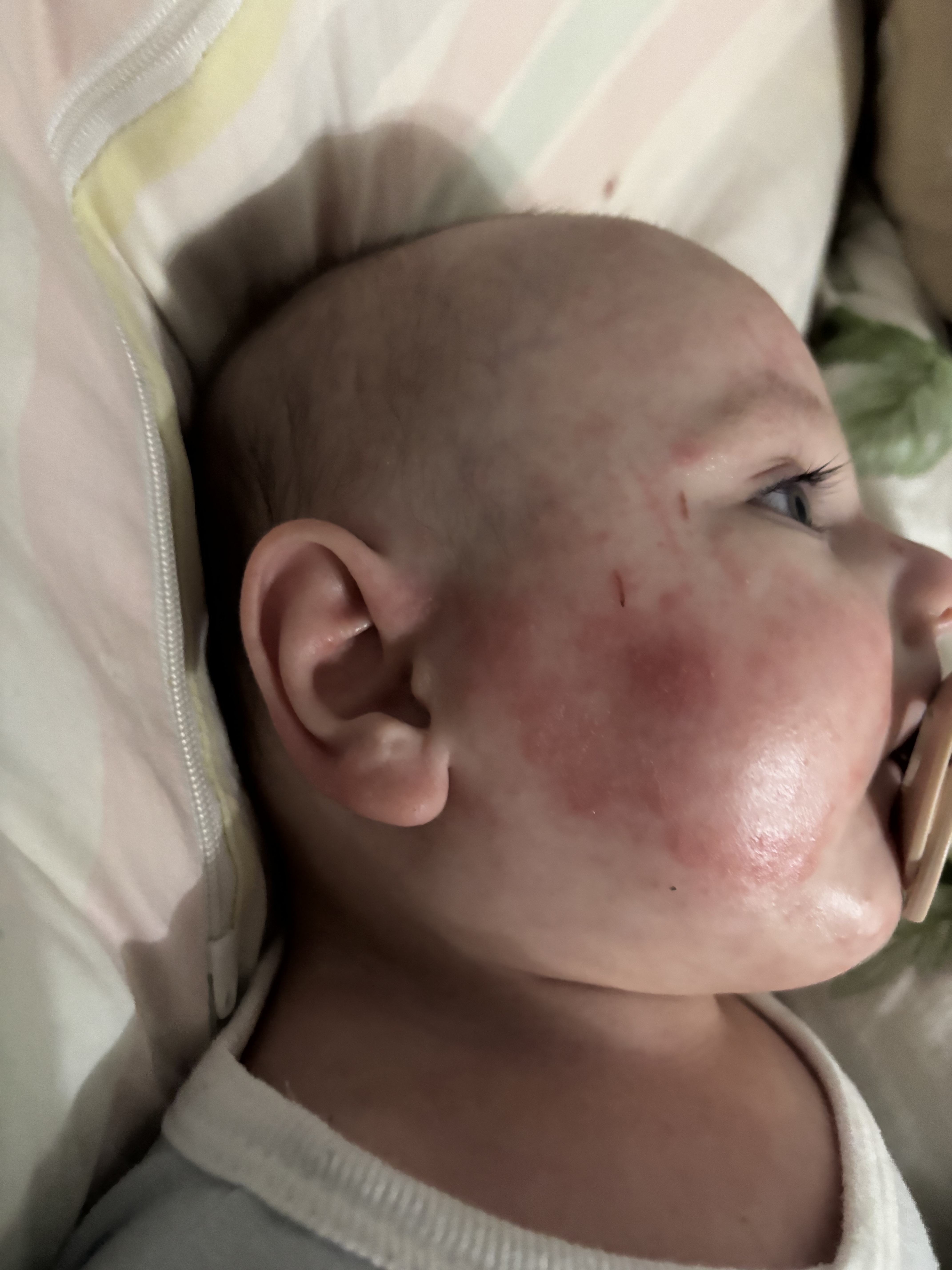 Mi to wygląda na alergię, u nas było podonie przy alergi na mleko ale może mieć również alergię ma proszek . Często dzieci mają tak po proszku do prania . . Musisz koniecznie udać się do pediatry . Nie stresuj się na zapas jutro do lekarza pójdziesz i napewno coś poleci lub da skierowanie do alergologa.