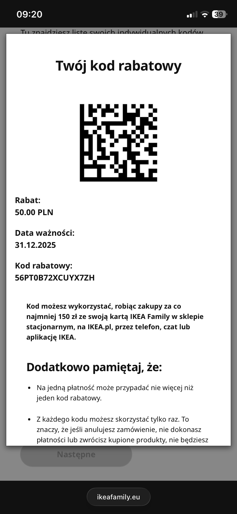 Ja dostałam kod, ale wykorzystałam, bo uzupełnilam zastawę stołowa na nadchodzącą wigilię, bo takto musiałam myć co chwilę te talerze.