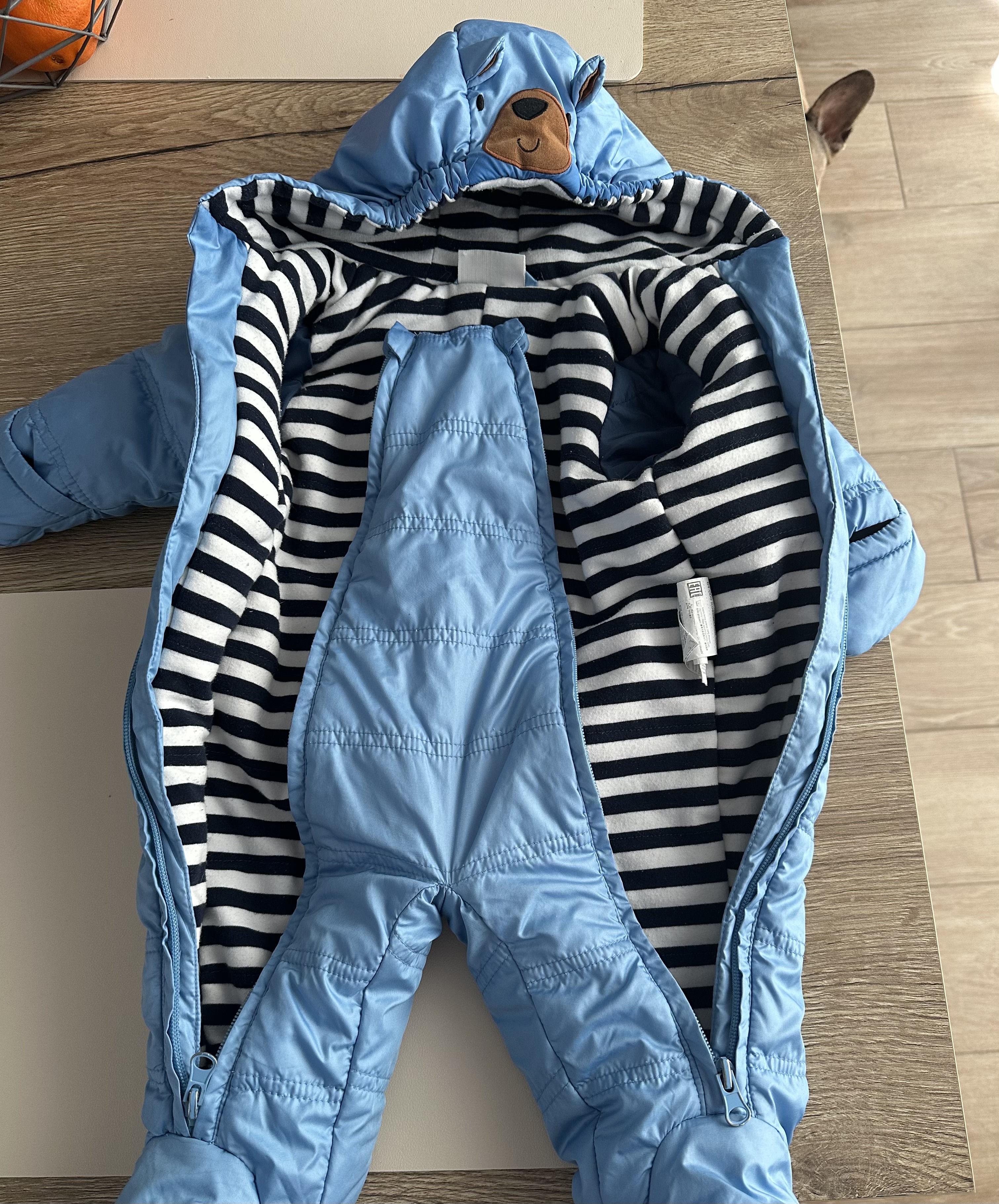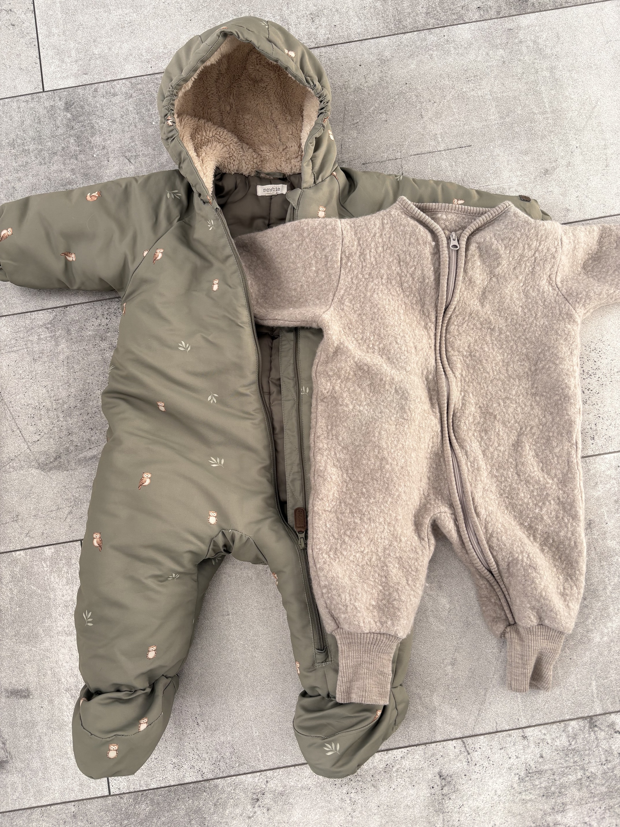 Ja zakładam taki kombinezon, a jak jest poniżej 0 to dokładam ten pajac merino. Pod spodem body na długi rękaw+legginsy. W gondoli przykrywam kocykiem
