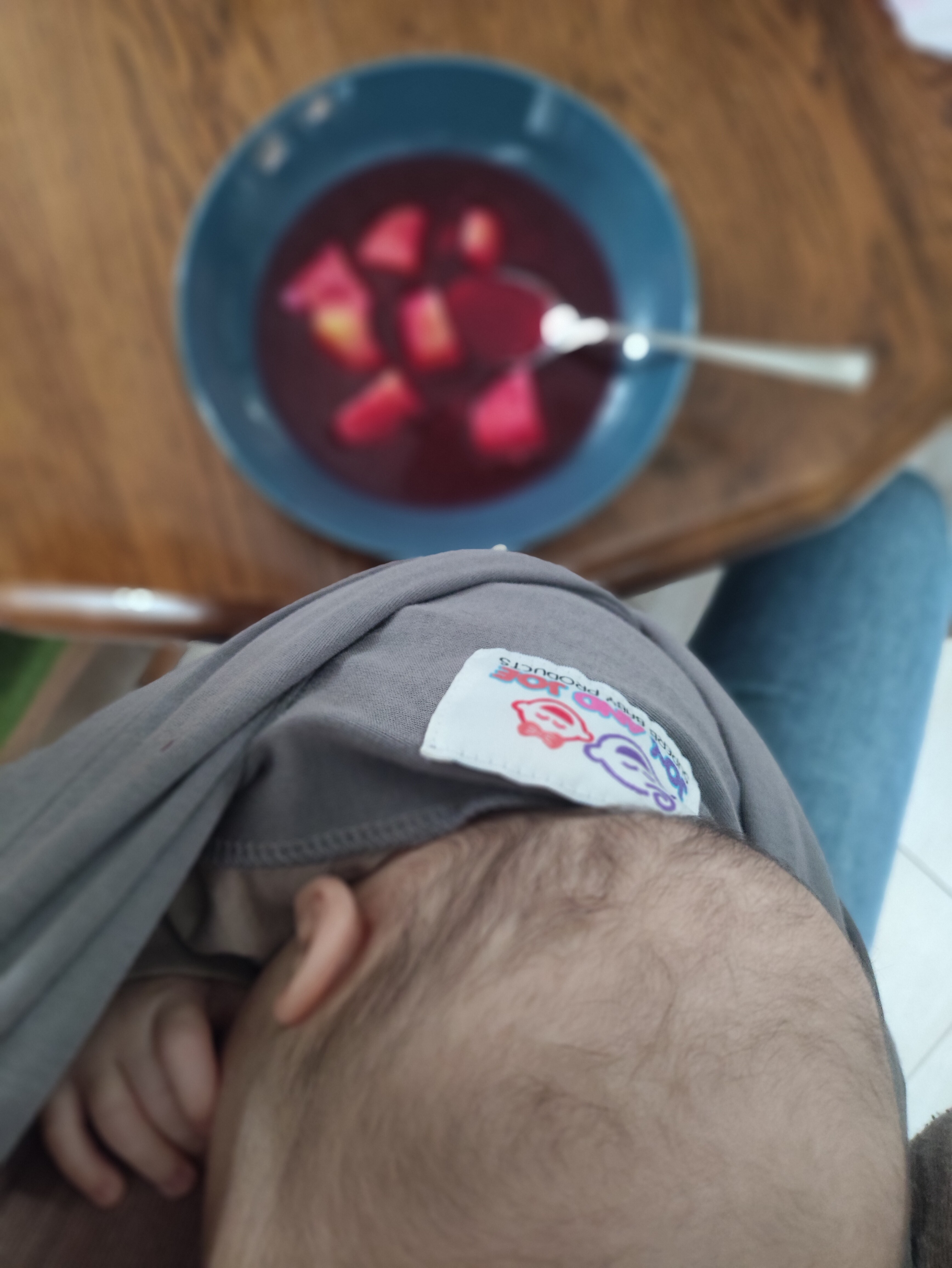 (ciulato zawiązana chusta bo to na szybko byle zjeść i odłożyć jak zaśnie:see_no_evil:)