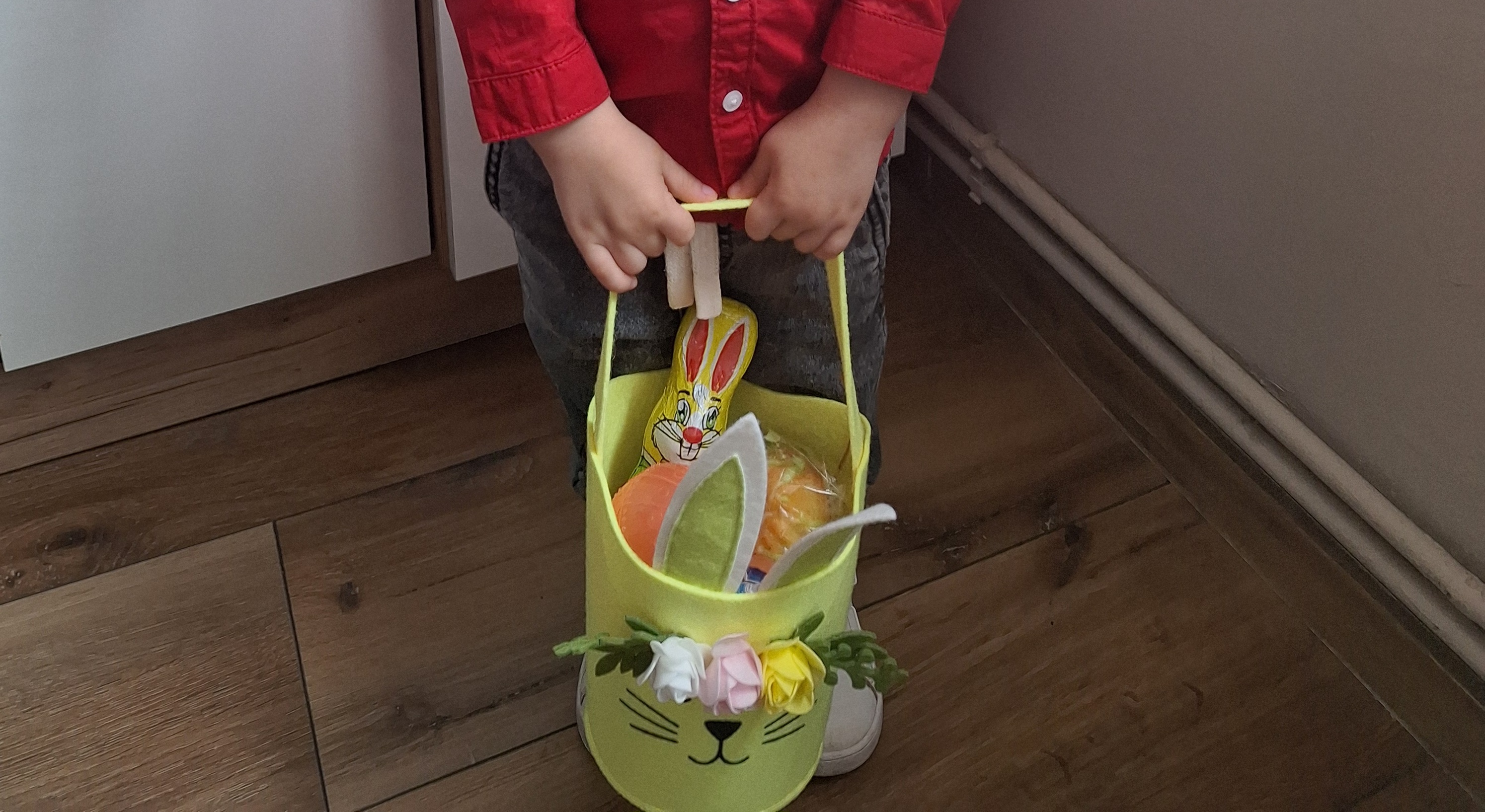 W domu zawsze rano też czeka na niego prezent od zajaczka wielkanocnego ![]()