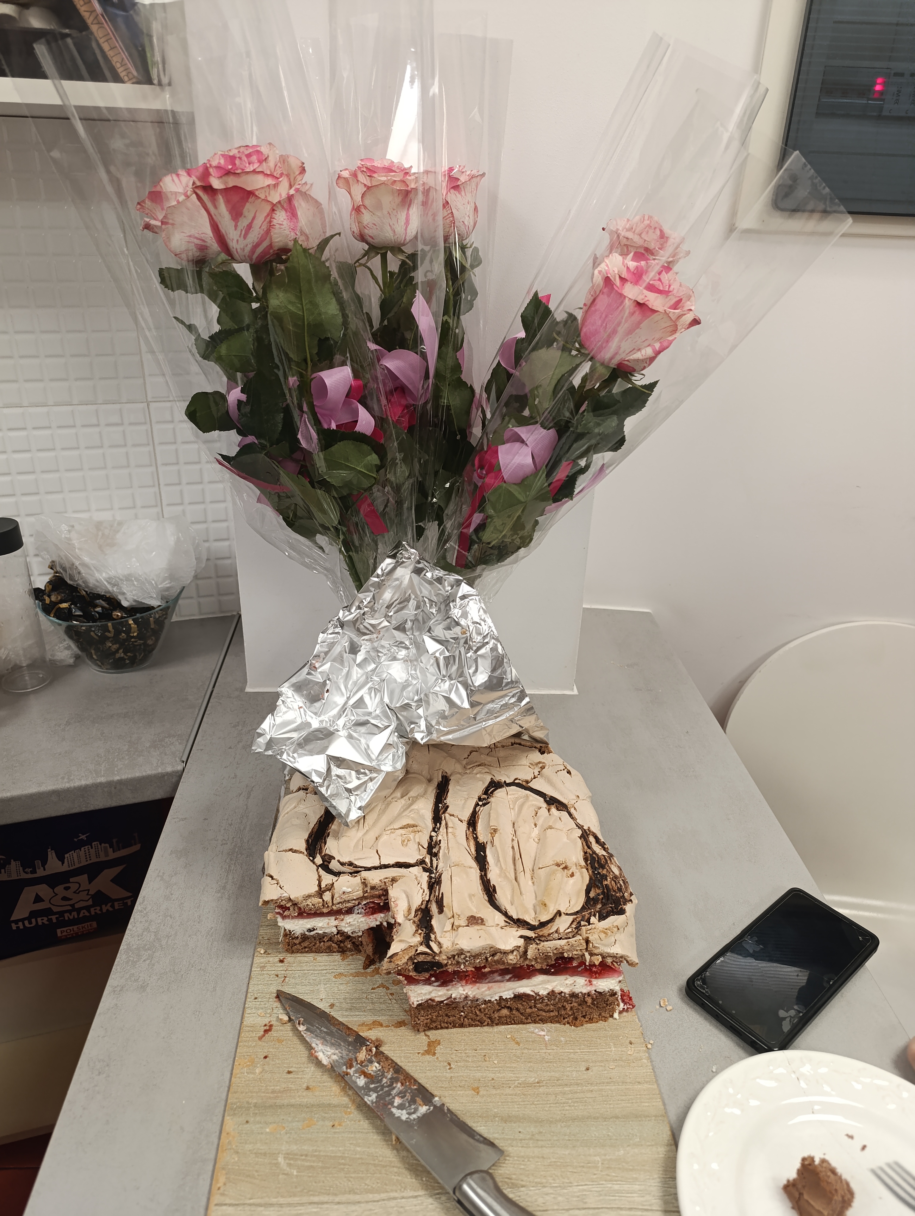 Tak koleżanka miała 40 więc najpierw dali nam kwiatki i dla niej jakby placek ale oczywiście żeby wszystkie zjadły ![]()