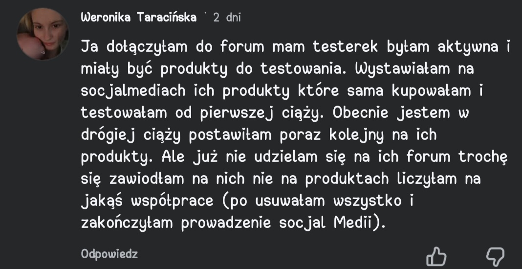 dołączyłam we wrześniu ale na początku szukałam w lupce interesujących mnie tematów i w ogóle się nie udzielałam, a moja obecność tu była dosłownie na chwilę. Pod koniec października urodziłam i dopiero zaczęłam się udzielać chyba w grudniu - jak już ogarnęłam się w nowej rzeczywistości i w sumie głównie dlatego, że brakowało mi rozmowy z ludźmi (a na grupach fb często jest hejt i wyśmiewanie) to zaczęłam się tu udzielać . A mimo mojej aktywności od grudnia na forum redakcja wybrała m.in mnie do testów. Ale zauważyłam też że do testów zostały wyznaczone osoby które były aktywne i udzielały pomocnych rad na forum i nie pisały postów tylko pod nagrodę. Ogólnie też myślałam że nie zostanę wybrana do testów przez to, że zaczęłam pisać na forum od grudnia, ale jak widać redakcja daje też szansę nowym użytkowniczkom