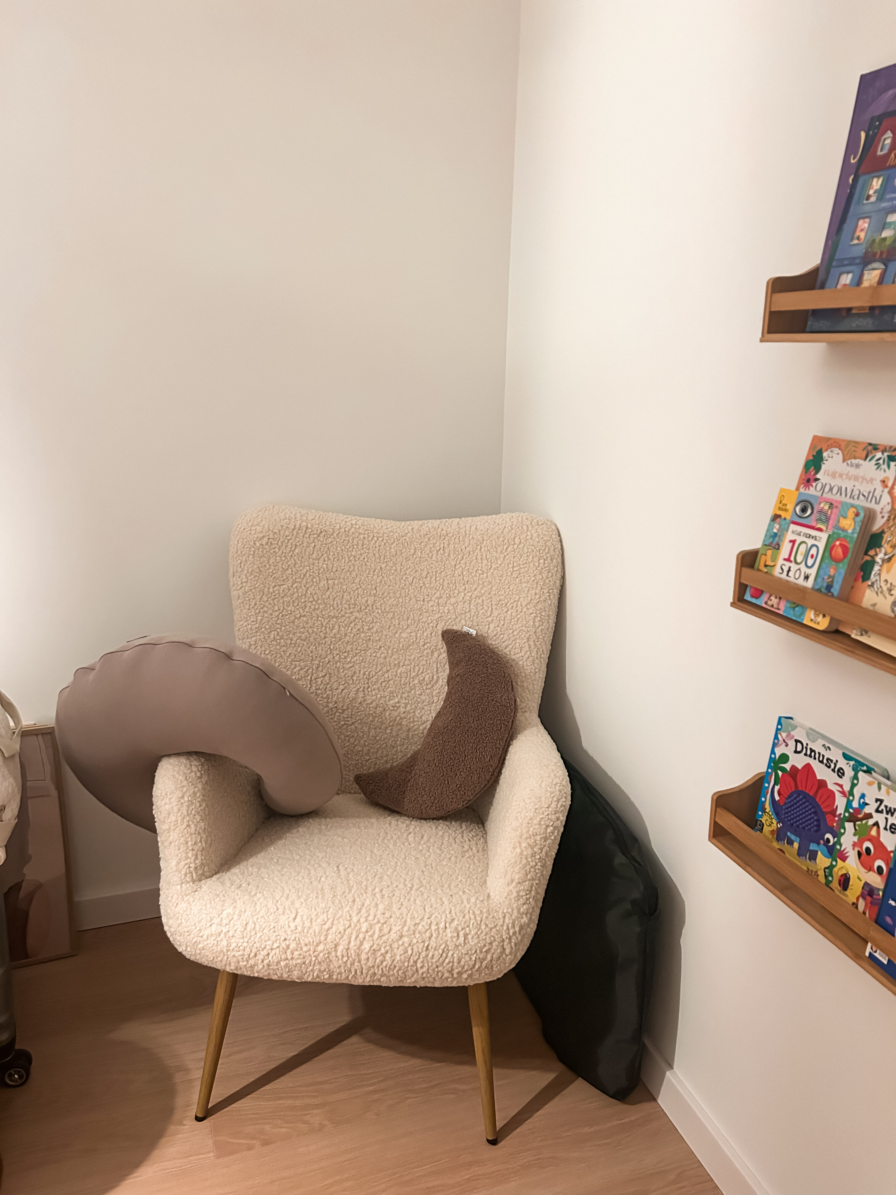 Gdybym kupiła fotel od razu jak planowałam to bym go nie używała bo nie karmię synka w sypialni. W nocy wolę zejść na dół do salonu i tam nakarmić synka, żeby nie budzić męża a poza tym tam jest podgrzewacz itd