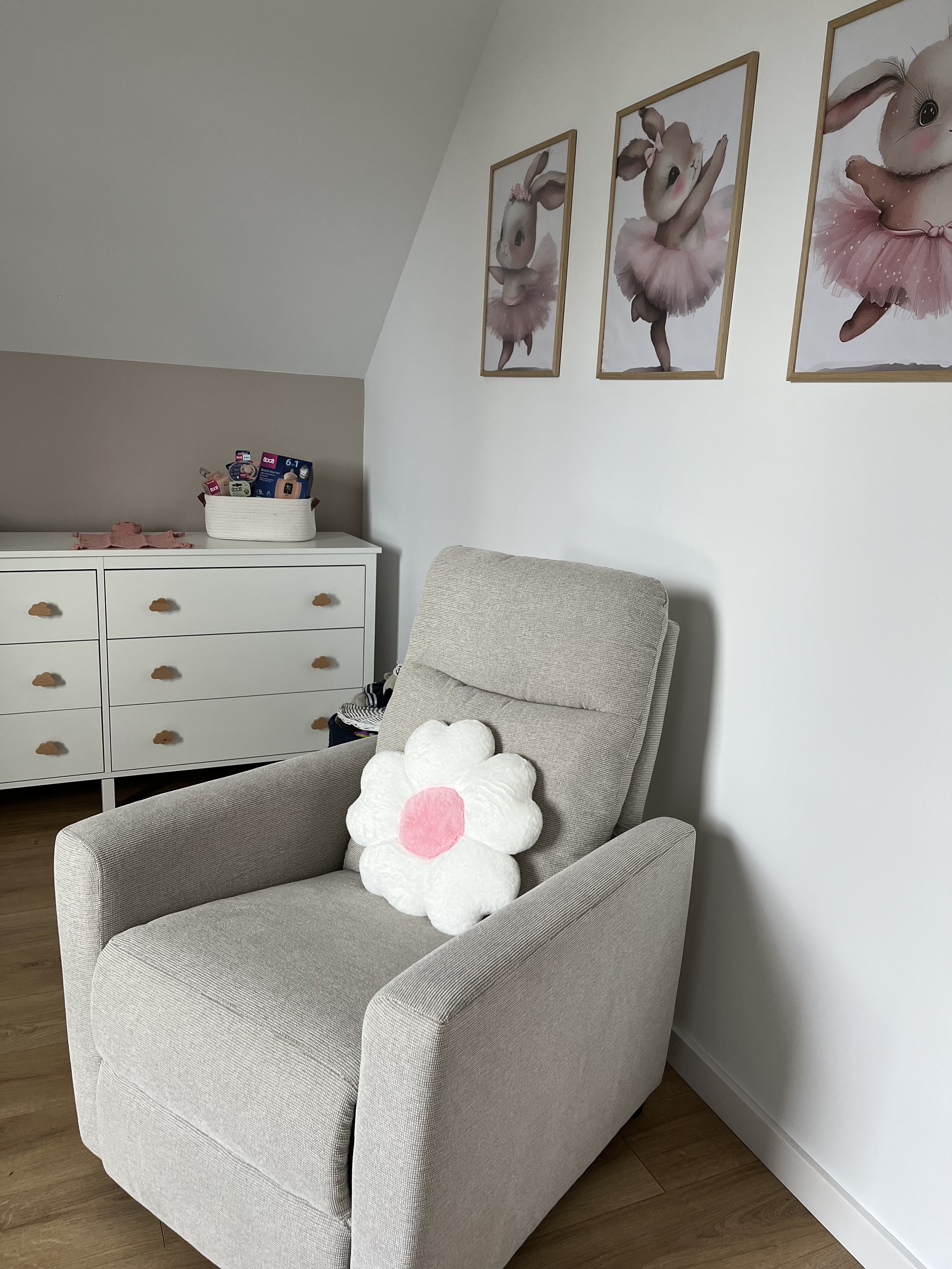 pierwszą córkę karmiłam w dzień w salonie na kanapie, ale na niej mi mega niewygodnie bo jest bardzo głęboka i za plecami musiałam mieć 3 poduszki żeby siedzieć jak należy i finalnie na szybko nie robiłam konstrukcji i siedziałam jak pokraka