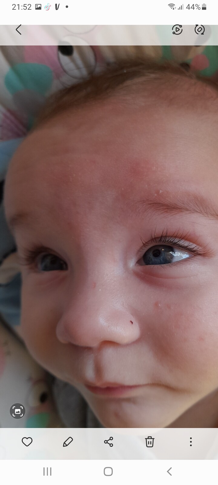 Mój synek ma takie chrostki na policzku u Was tak wyglądała skaza? Czy to raczej trądzik niemowlęcy? Niby na razie tylko kilka krostek jest, ale kolki też są.