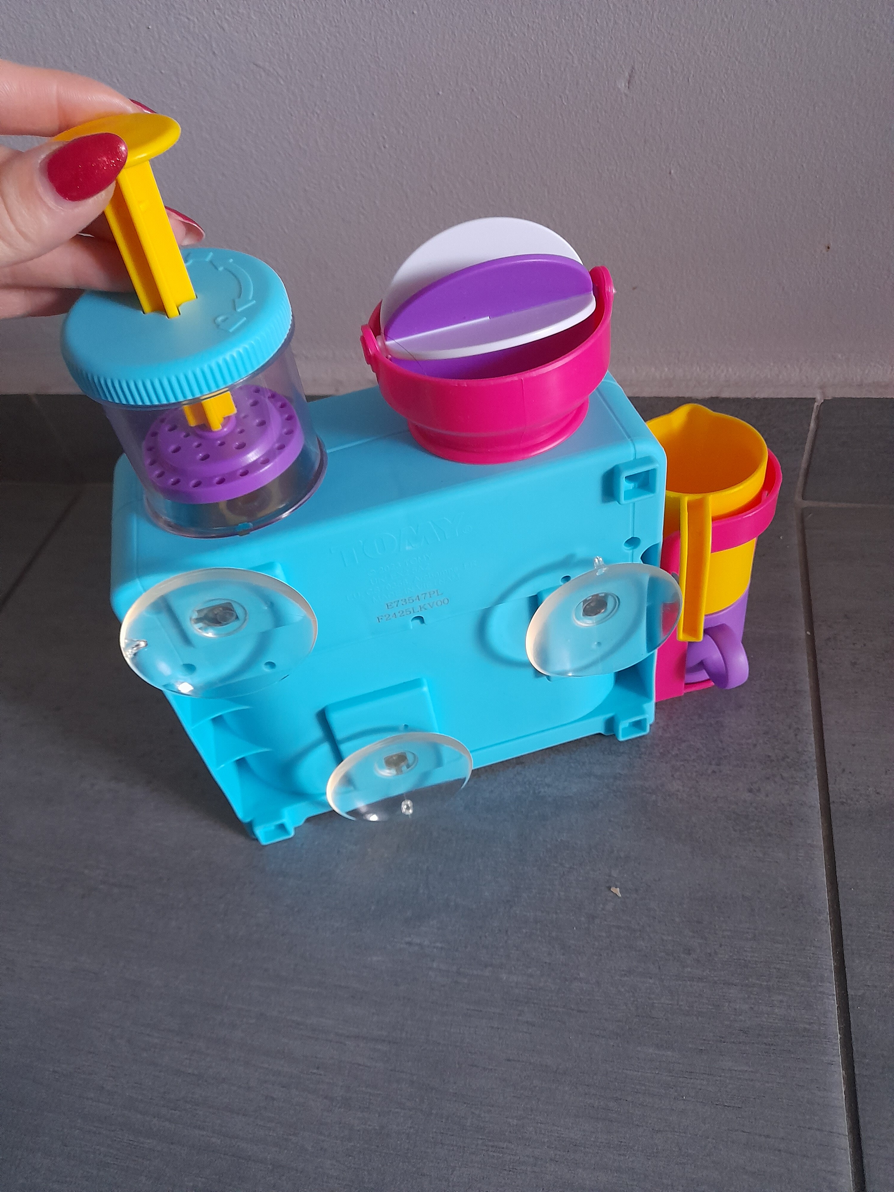 co jakiś czas lądują w zmywarce. Miałam też dla córki taki kran z owocami którego leci woda, super zabawka, jednakże nie da się go w 100% wysuszyć i musiałam go po czasie wyrzuć jak tylko zauważyłam odznaki pleśni, ale bardzo długo służył ![]()