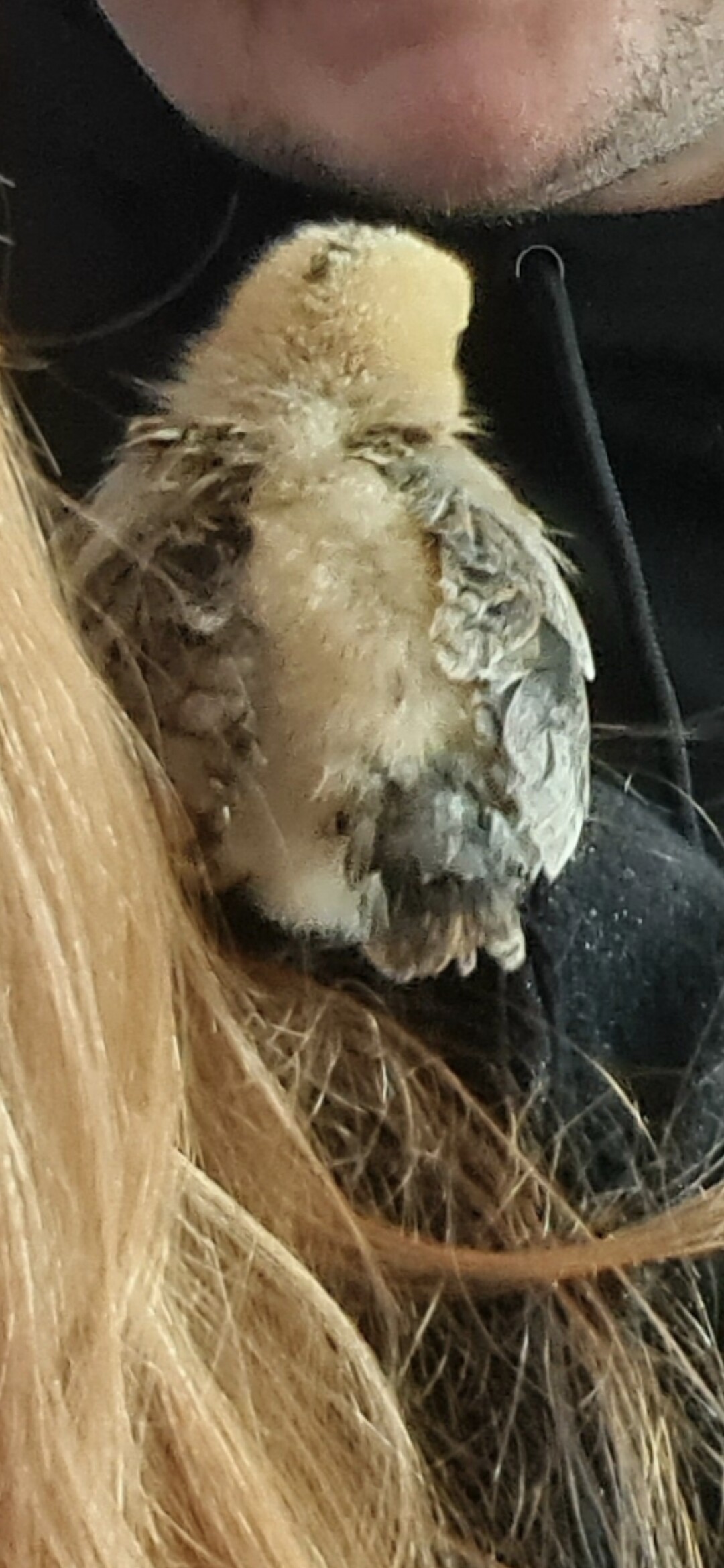 nauczyla sie siedzieć ramieniu jak papuga i jak dorosla i wrocila do swoich to dalej przybiegala i trzymala sie na ramieniu ![]()