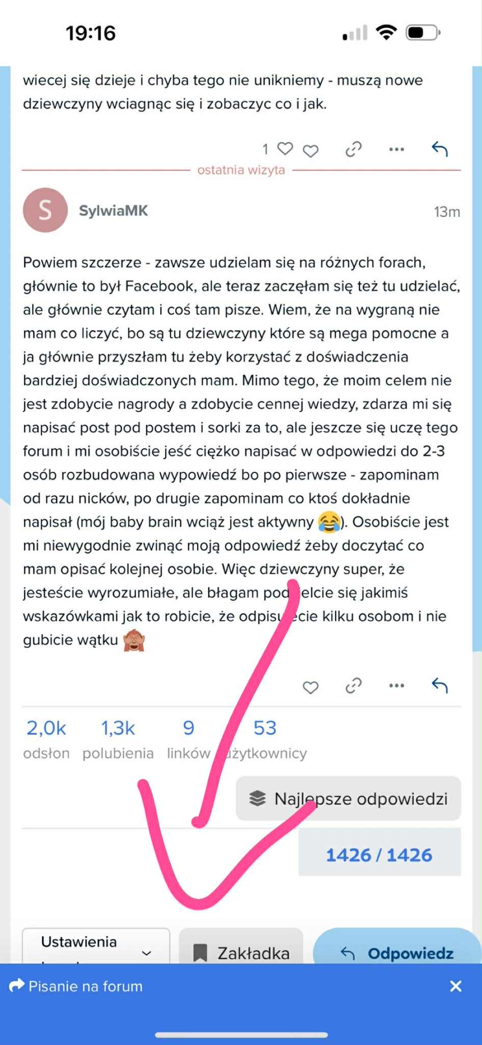 Powiem szczerze - zawsze udzielam się na różnych forach, głównie to był Facebook, ale teraz zaczęłam się też tu udzielać, ale głównie czytam i coś tam pisze. Wiem, że na wygraną nie mam co liczyć, bo są tu dziewczyny które są mega pomocne a ja głównie przyszłam tu żeby korzystać z doświadczenia bardziej doświadczonych mam. Mimo tego, że moim celem nie jest zdobycie nagrody a zdobycie cennej wiedzy, zdarza mi się napisać post pod postem i sorki za to, ale jeszcze się uczę tego forum i mi osobiście jeść ciężko napisać w odpowiedzi do 2-3 osób rozbudowana wypowiedź bo po pierwsze - zapominam od razu nicków, po drugie zapominam co ktoś dokładnie napisał (mój baby brain wciąż jest aktywny