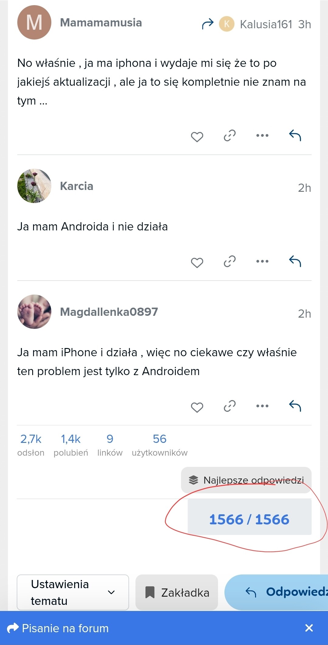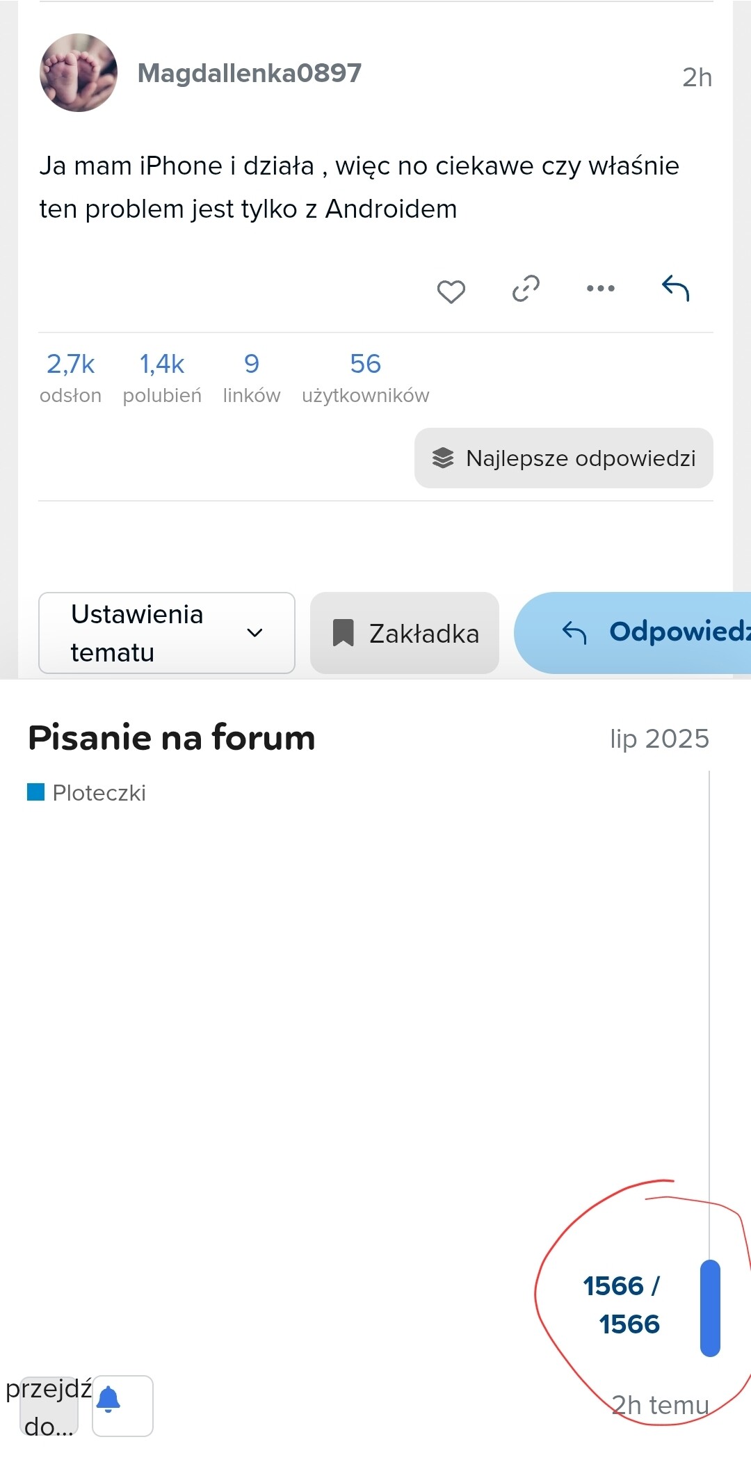 U mnie nie dziala. Probowalam przez przegladarke tez. Jak jest za duzo postoŵ w watku to czesto przestaja sie ladowac i blad.