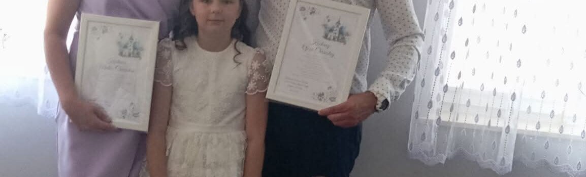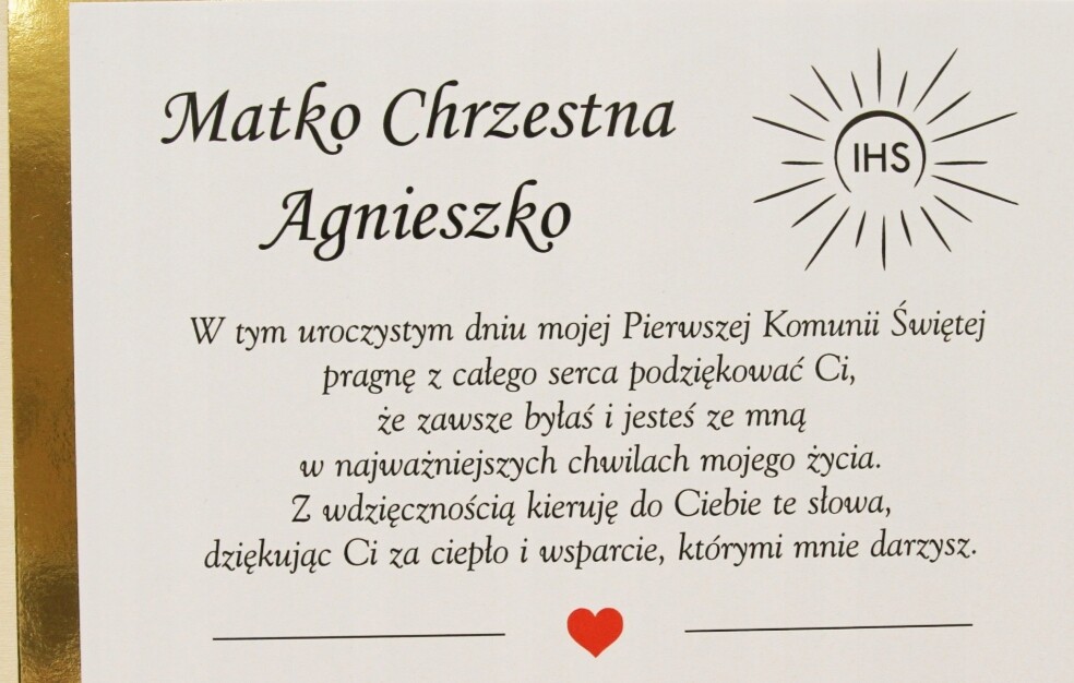 Ja u mojej 3 starszych na komunię zawsze dawałam obrazek z tekstem podziękowania