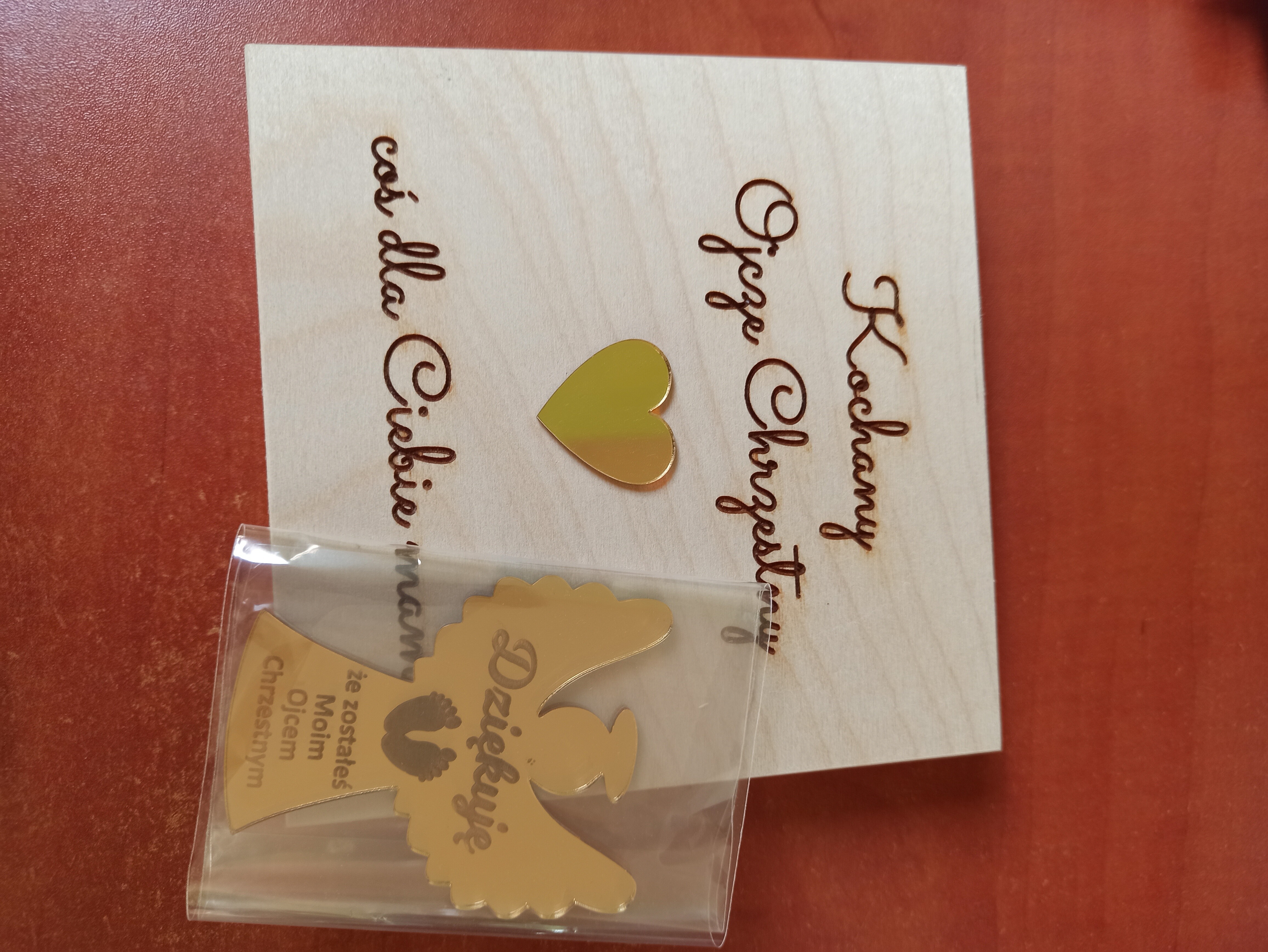 Mój mąż ostatnio podawał i w ramach podziękowań dostał takie drewniane pudełeczko z aniołkiem. W środku jest zdjęcie chrześniaczki z podziękowaniami.