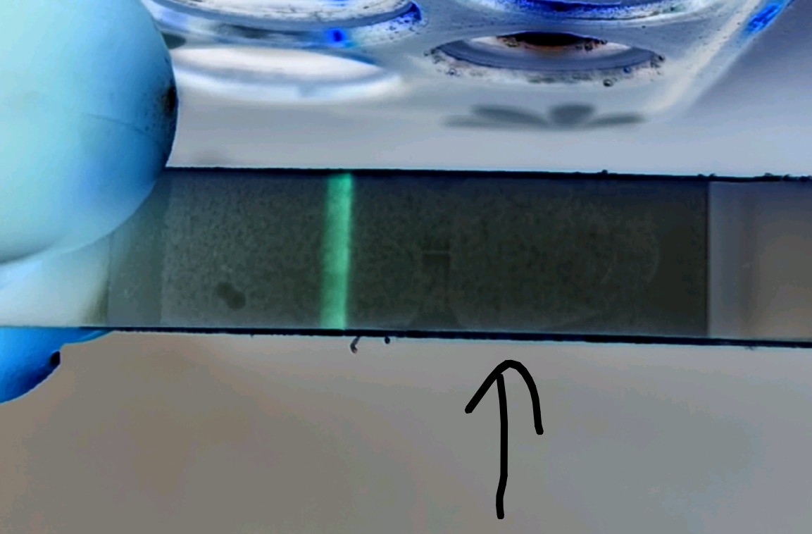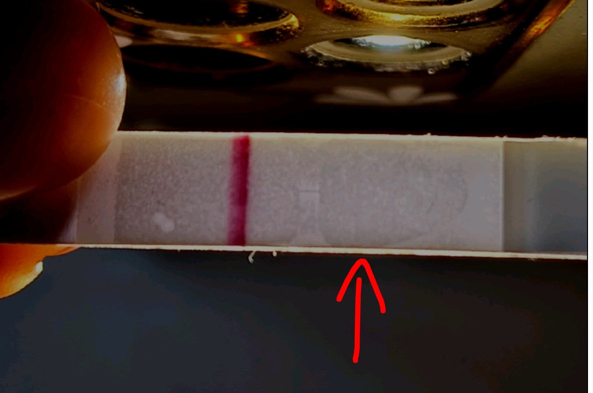 Wydaje mi sie ze jak podswietlisz latarka to ta kreske bedzie widać tak czy siak ;/ powtorz za dwa dni ,moze byc tez test wadliwy