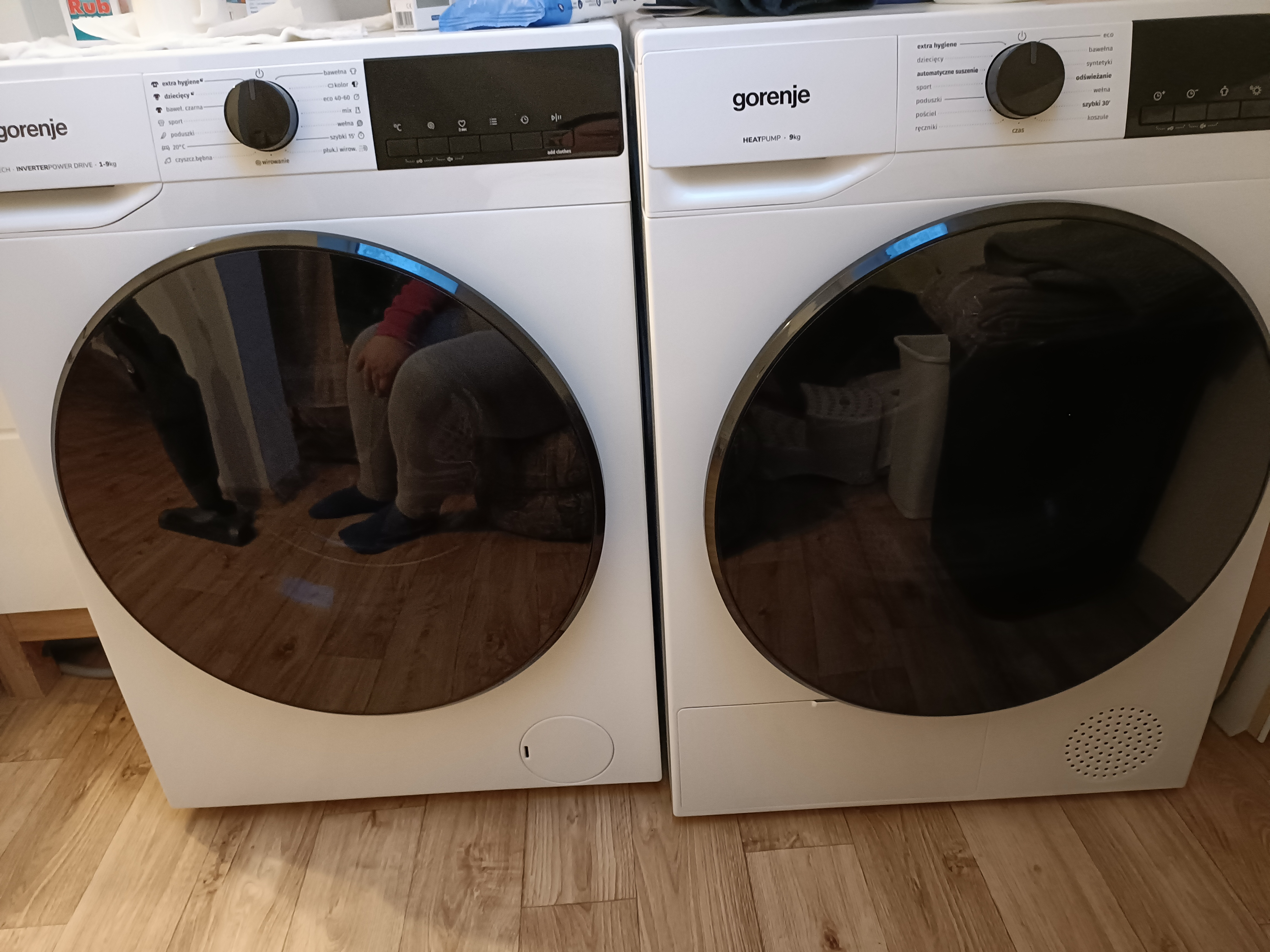 Braliśmy kilka firm pod uwagę, ostatecznie padło na firmę Gorenje, która cenowo wyszła dość przystępnie i były programy które mnie najbardziej interesowały. Zarówno pralka jak i suszarka mają opcje inteligentne które same ważą zawartość i dostosowują sobie czas jaki zajmie pranie/suszenie. Wsad nawet jak będzie pełny w suszarce to ubrania dzięki opcji “stóp zagnieceniom” wychodzą cieplutkie, gładkie,nie trzeba prasować,wystarczy poskładać i do szafy👍🏻