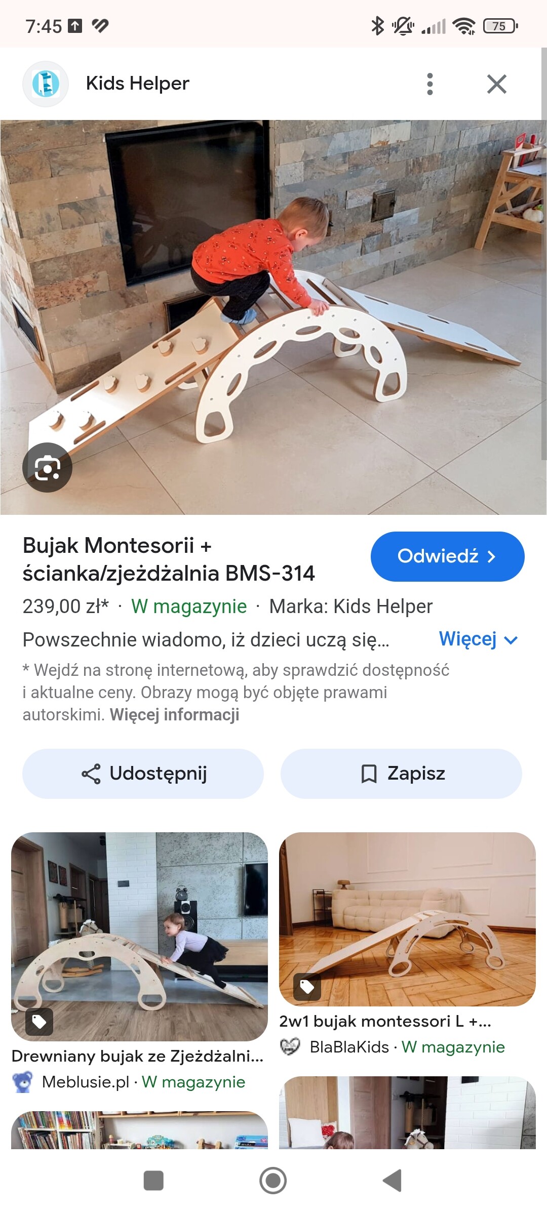 Huśtawkę i Bujak montessori już mamy, a drewniany plac zabaw na pewno pomyślimy ale to raczej na 2/3 urodzinki.