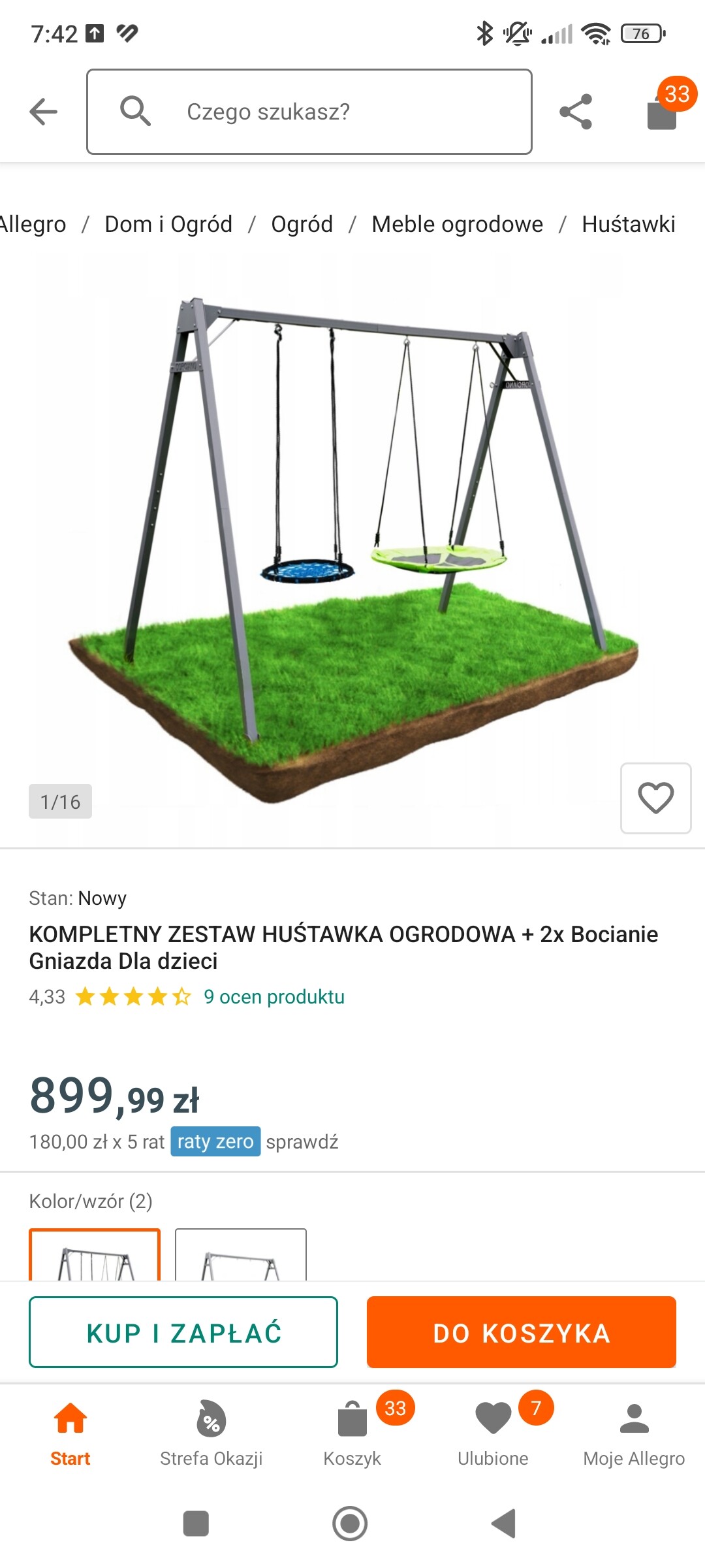 Napewno nie kupuj tych plastikowych zestawów ogrodowych bo one po roku wyblaknąć od słońca i wyglądają okropnie. Takie drewniany lepsze są w okolicach 2-3 tysięcy. Może samo bocianie gniazdo z huśtawka. Super są też te ścianki wspinaczkowe ale roczne dziecko jest moim dnianiem trochę za małe na nie.