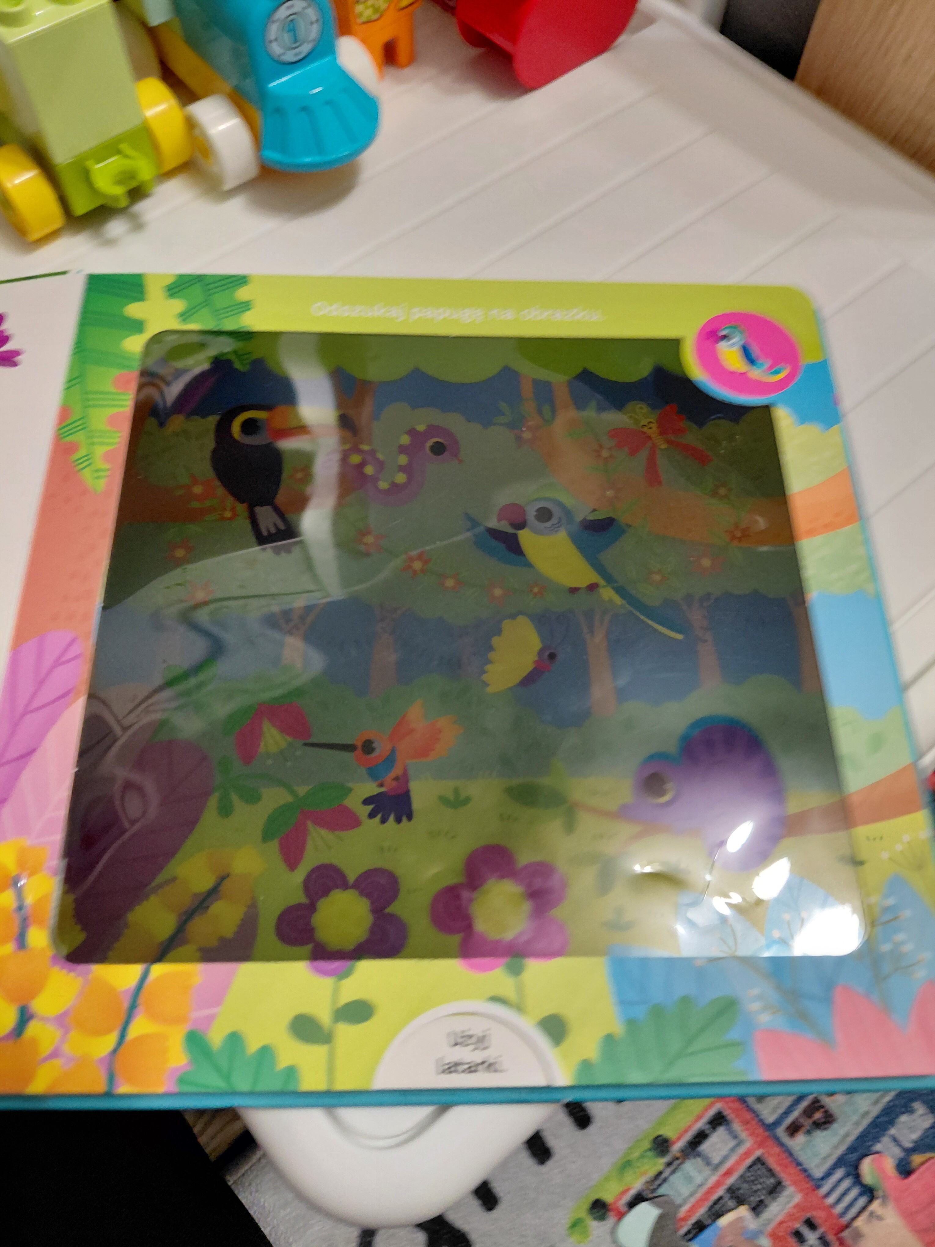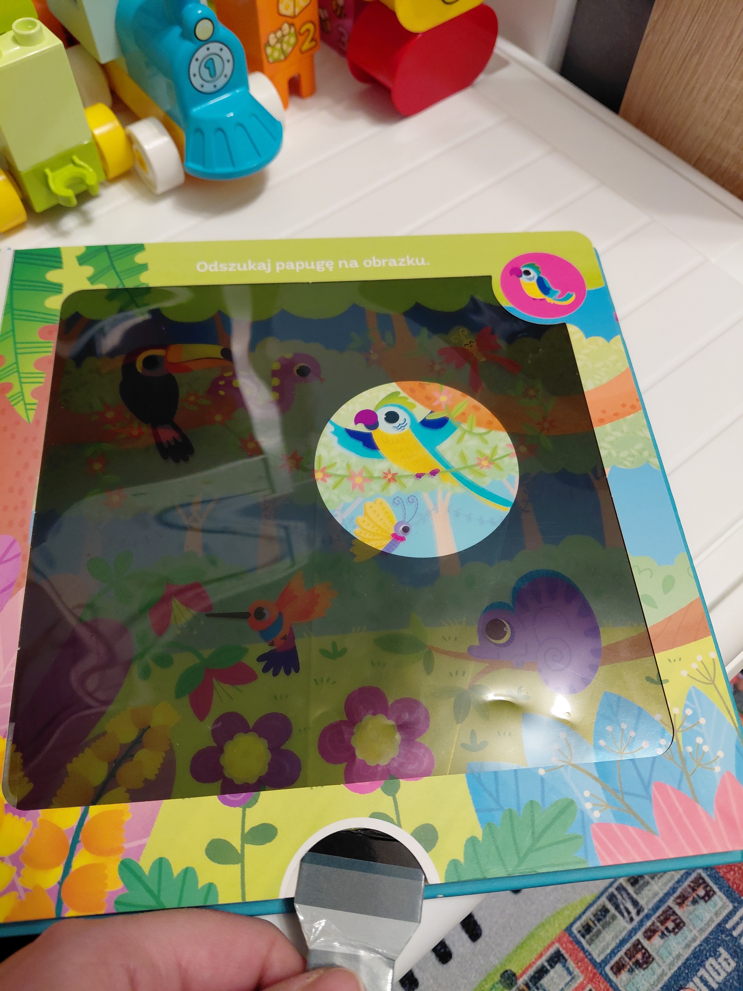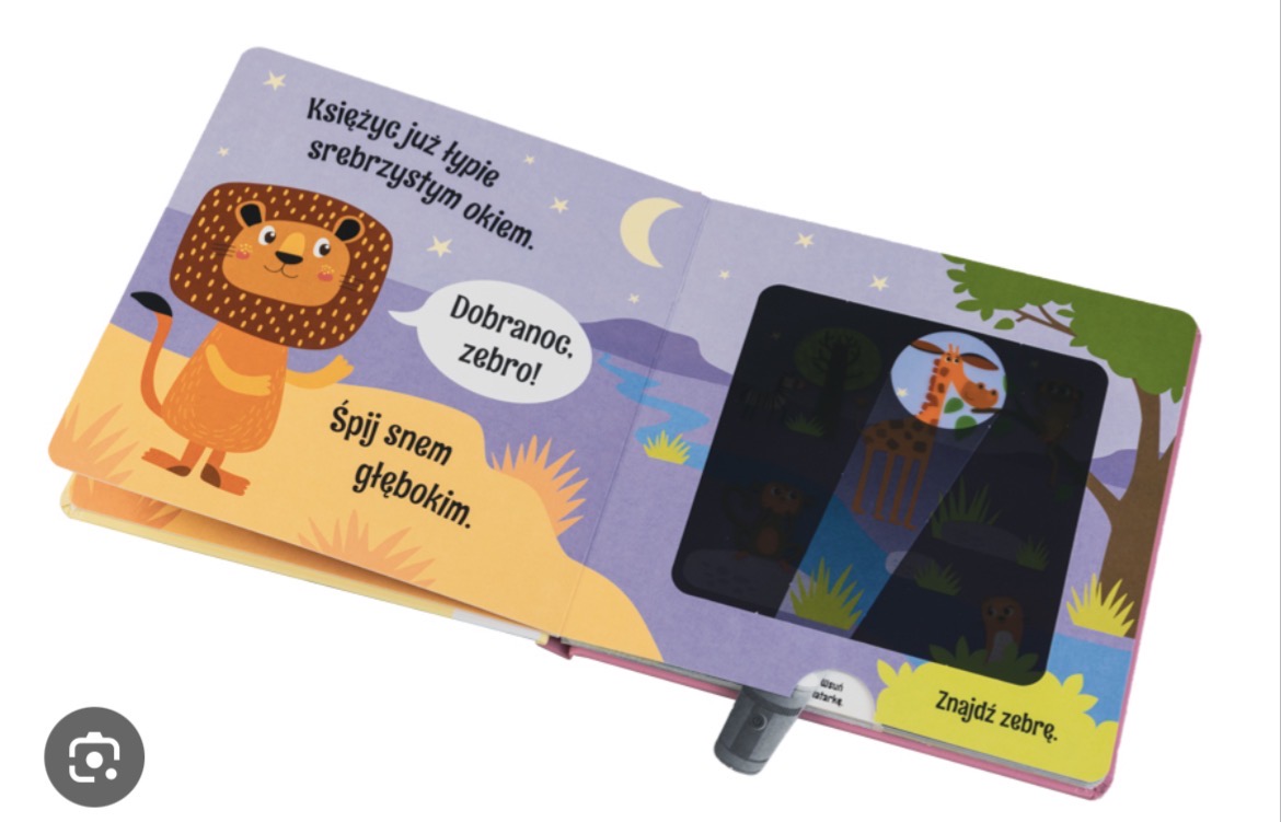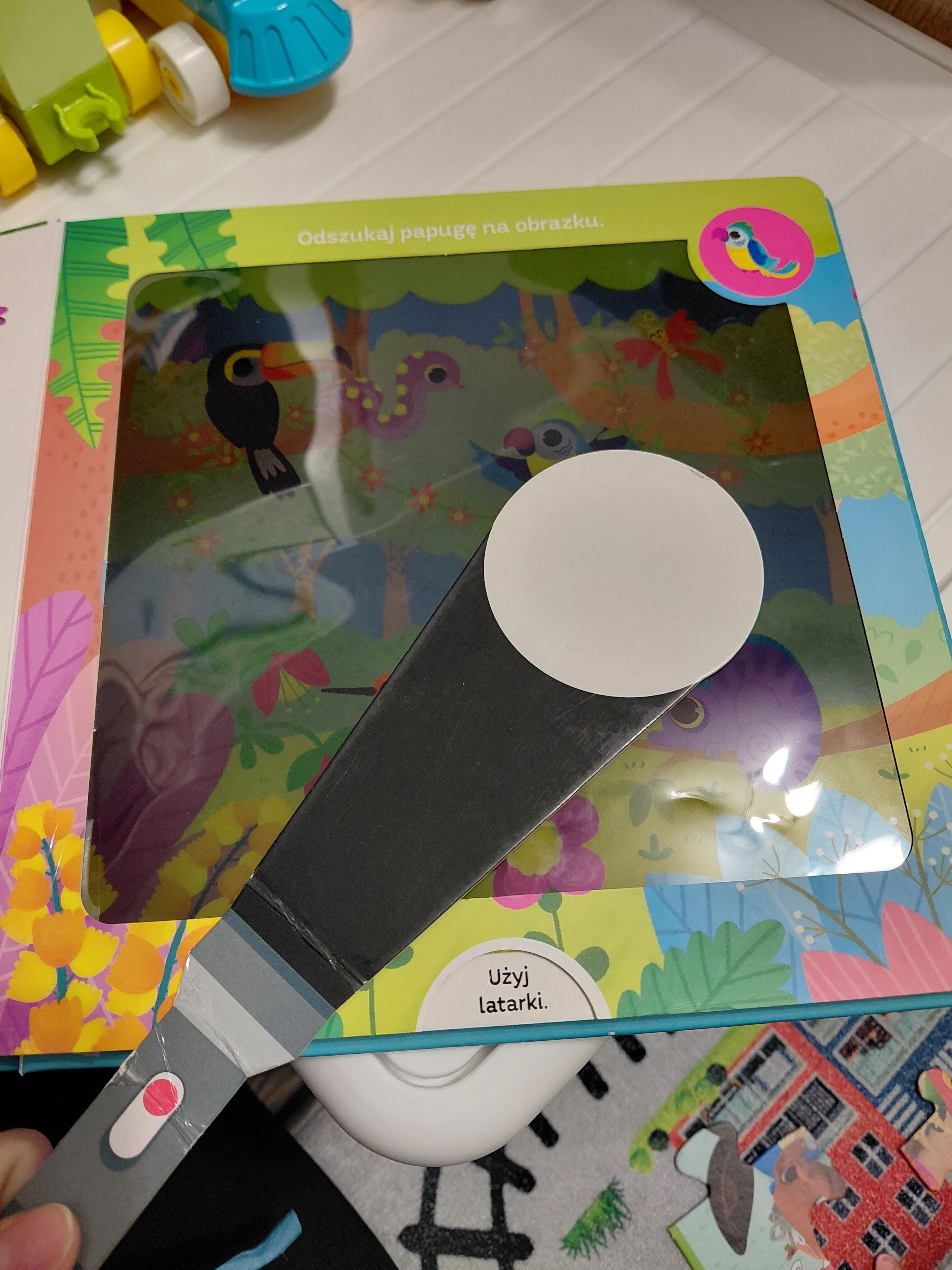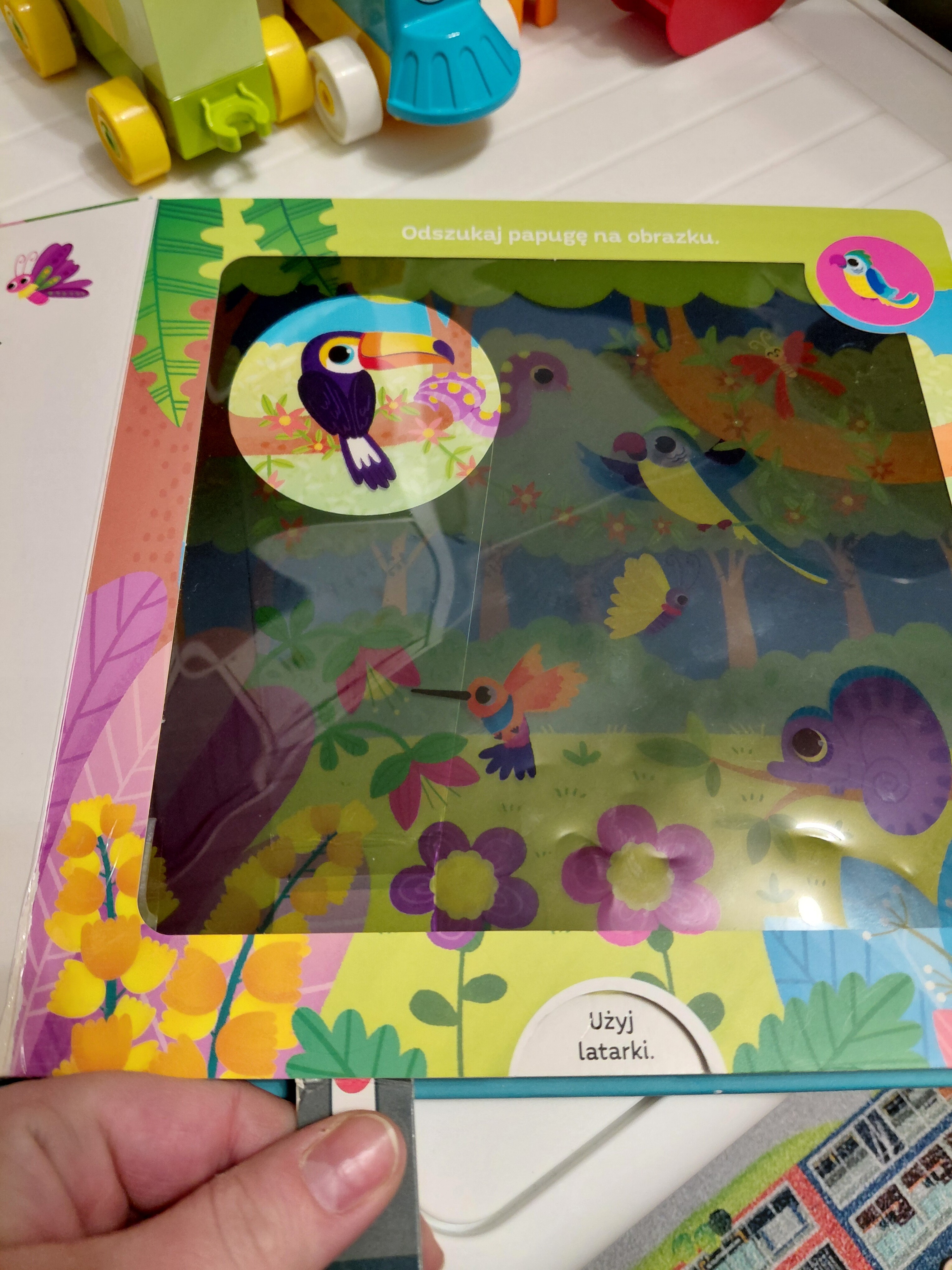 Ta “latarka” jest na sznureczki dołączona do książeczki i w każdą stronę można ją włożyć od spodu i wtedy się “podświetlają” te strony i widać co tam się ukrywa ![]()
