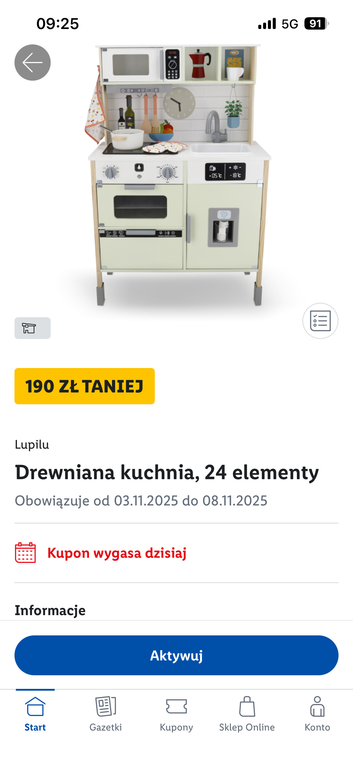 - W lidlu drewniana kuchnia za 159 zł po aktywacji kuponu w apce ;