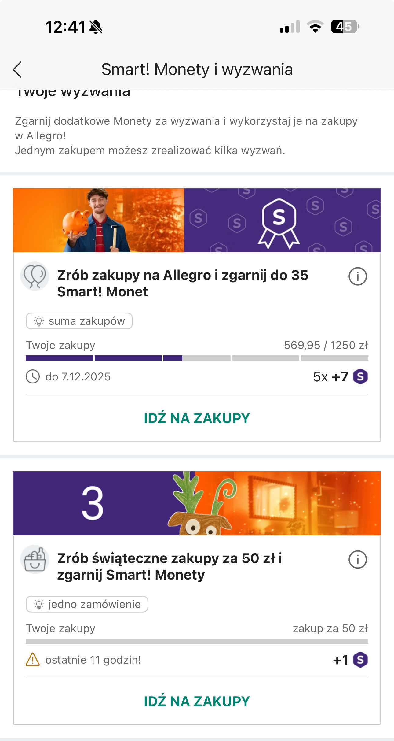 Na alegro też codziennie są wyzwania , jak ktoś często robi zakupy to kilka smart monet można zdobyć ![]()