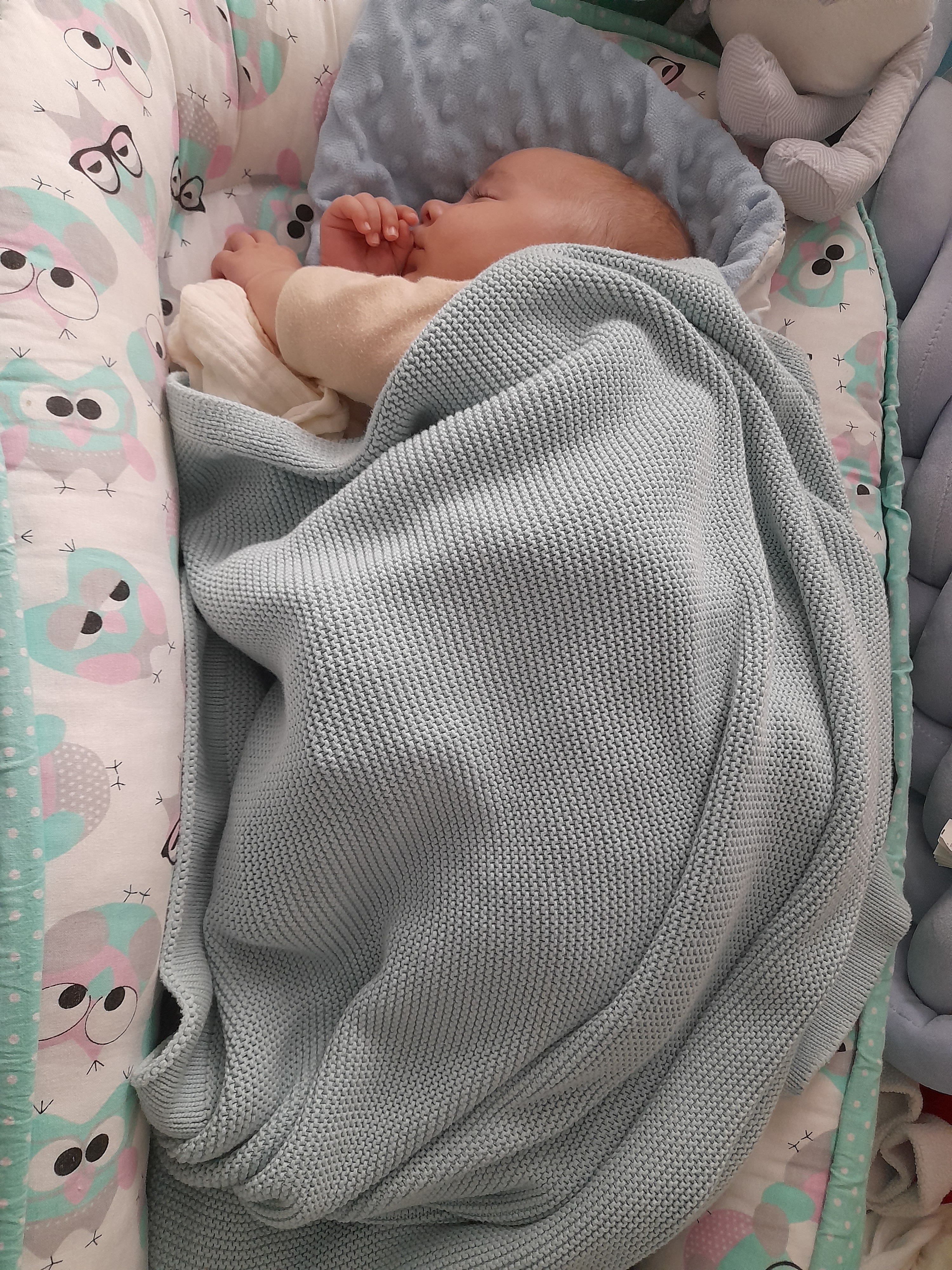 synek śpi pod nimi na zmianę , są fajne bo takie ciężkawe i jak odkładam synka i przykrywam kocykiem to tak jak bym go przytulała dalej i śpi nie wybudza się. My mamy kocyk bibi taki turkusowy ![]()