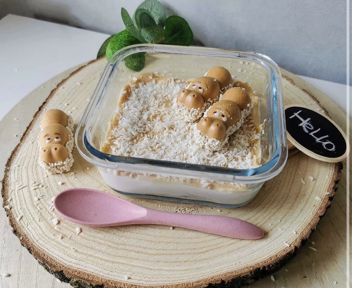 Próbowałam się oszukać, że jest pyszne i zdrowe i smakuje jak te słynne desery/batoniki kinder ale jedyne co w tym było słodkie to te krokodylke, a reszta mdła i bez smaku ![]()