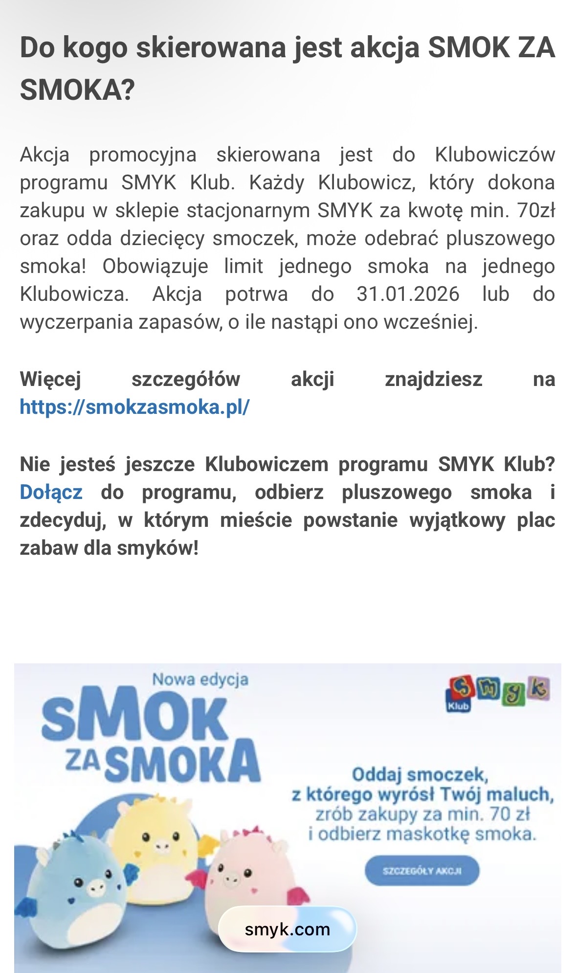 Oo Hahhaha może jeszcze potrzebuje czasu , możecie też spróbować porozmawiać i pójść do smyka tam jak kupisz coś chyba za 50 zł i zostawisz stary smoczek to dają misie
