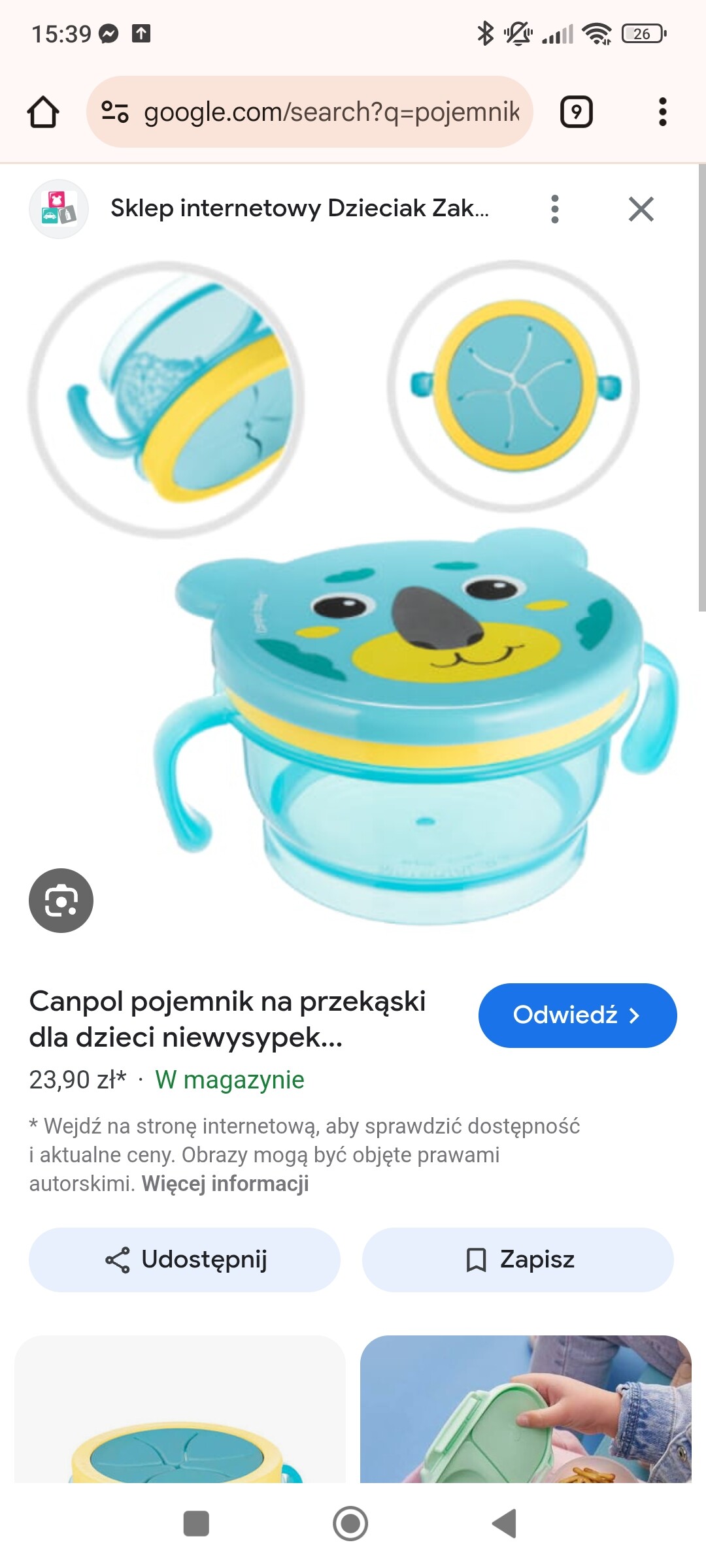 cena faktycznie kosmos jak za kawałek plastiku. Na wynos może i fajne ale czy aż tak przydatne. Ja polecam tą miseczkę z której dziecko nie wysypie nic. Może to nie jeycos podobnego ale przy małym dziecku do jakiś chrupeczkow zbawienna
