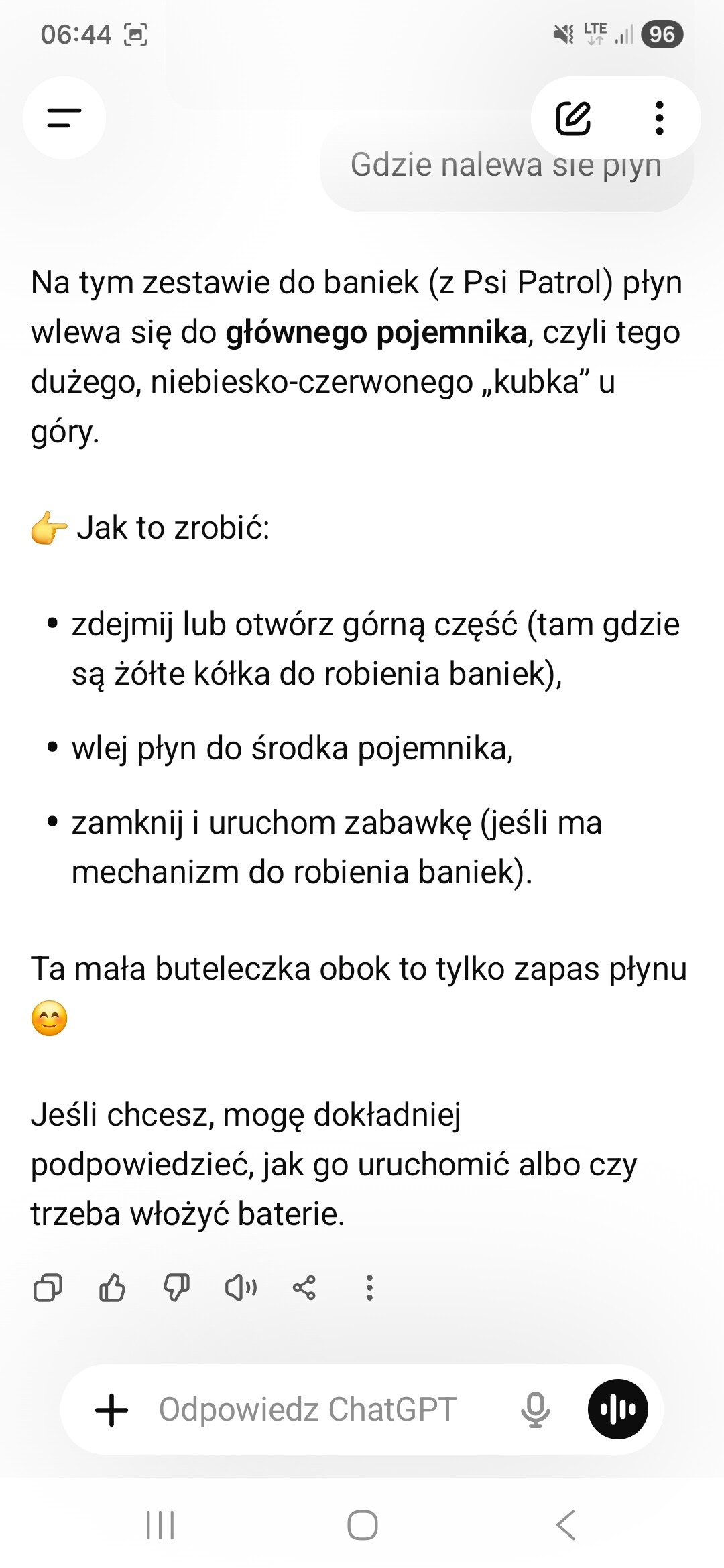Mój syn ostatnio się wystraszył fontanny do baniek z księgi patrolu