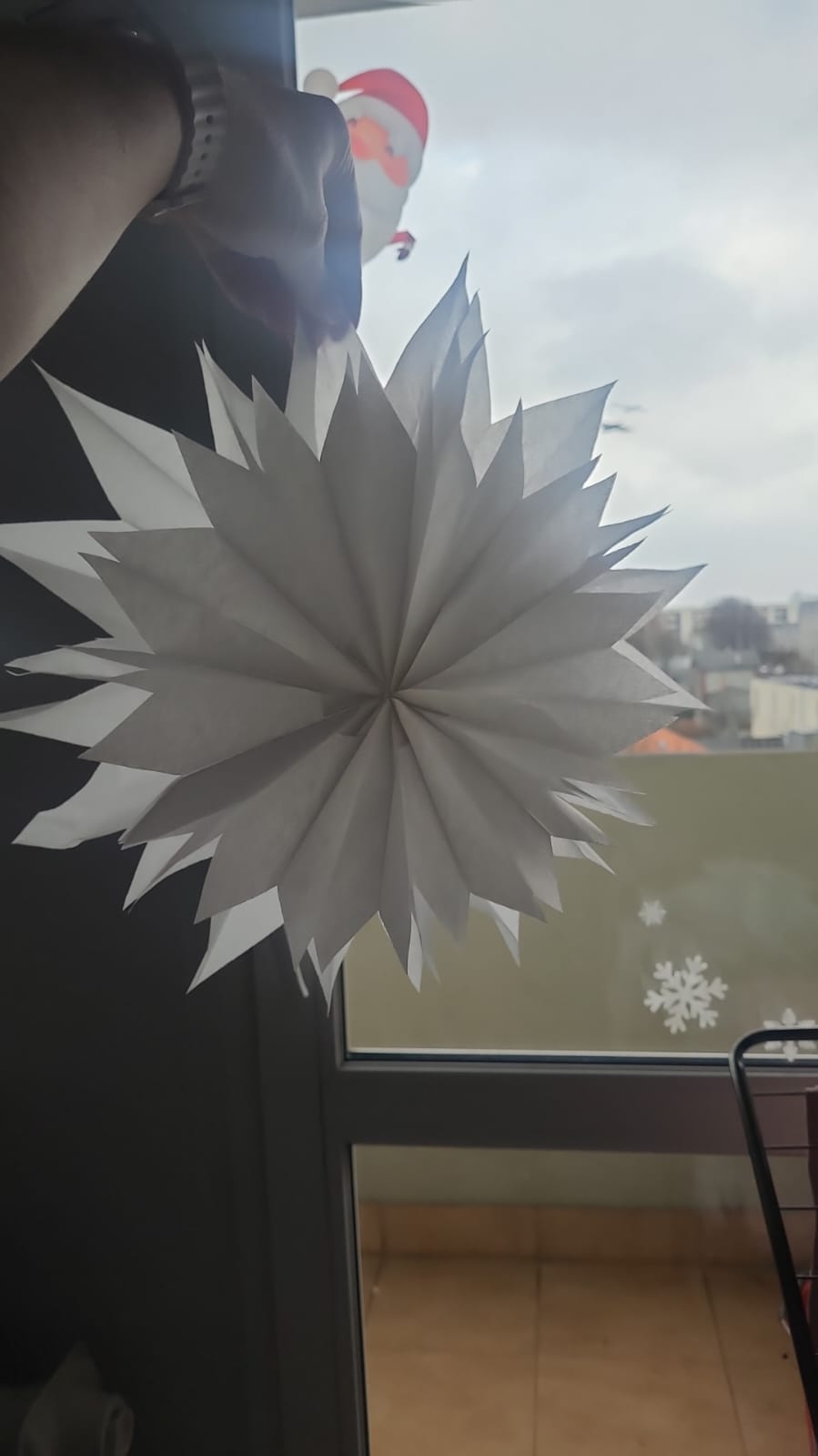 U nas w oknach wiszą śnieżynki z torebek śniadaniowych i są oświetlone delikatnym łańcuchem z lampkami ![]()