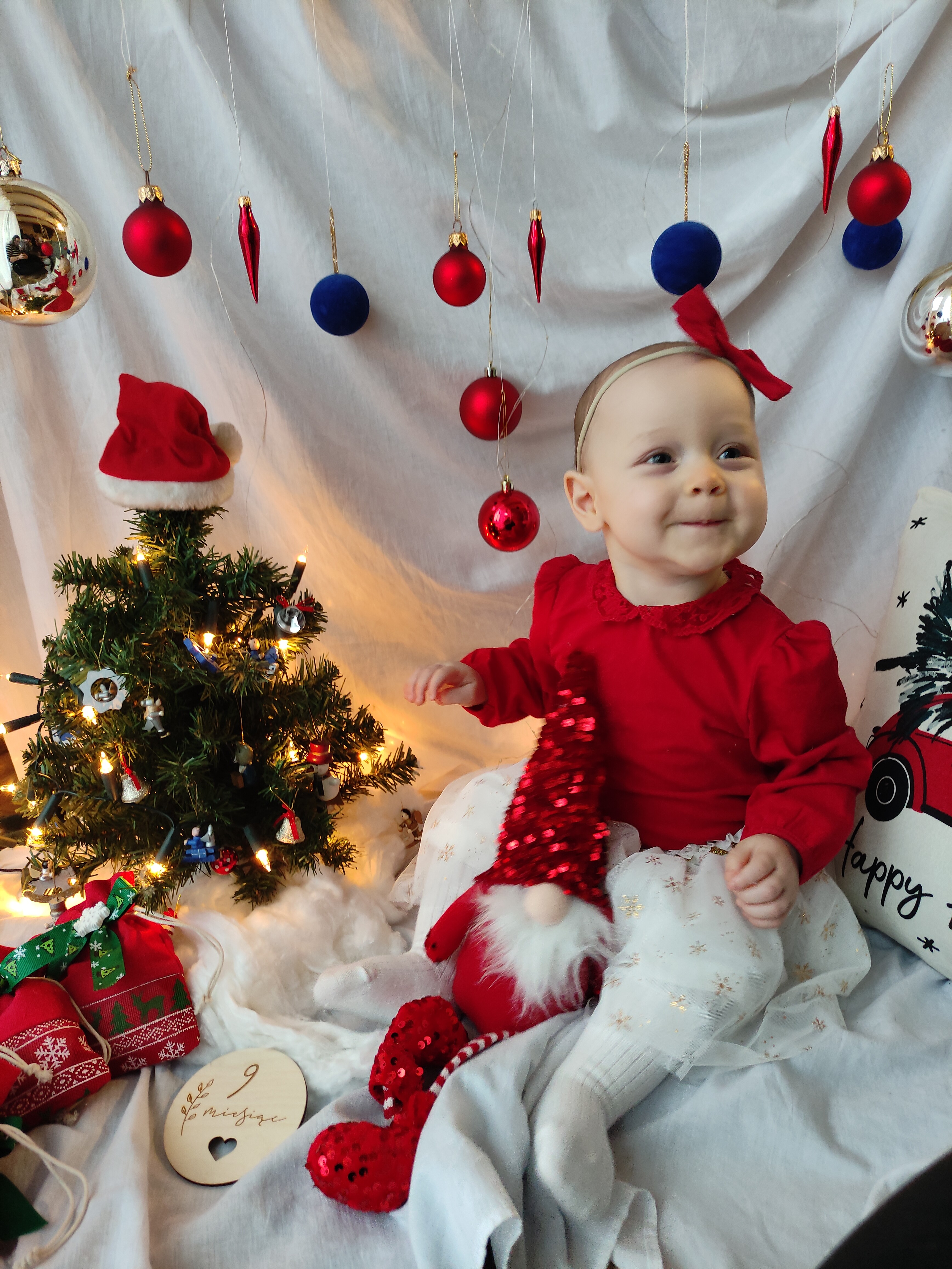 Pierwsza sesję świąteczną jak córka miała 9 miesięcy zrobiłam jej sama. Znalazłam inspiracje w necie żeby scenerię zrobić na suszarce do prania. Efekt był