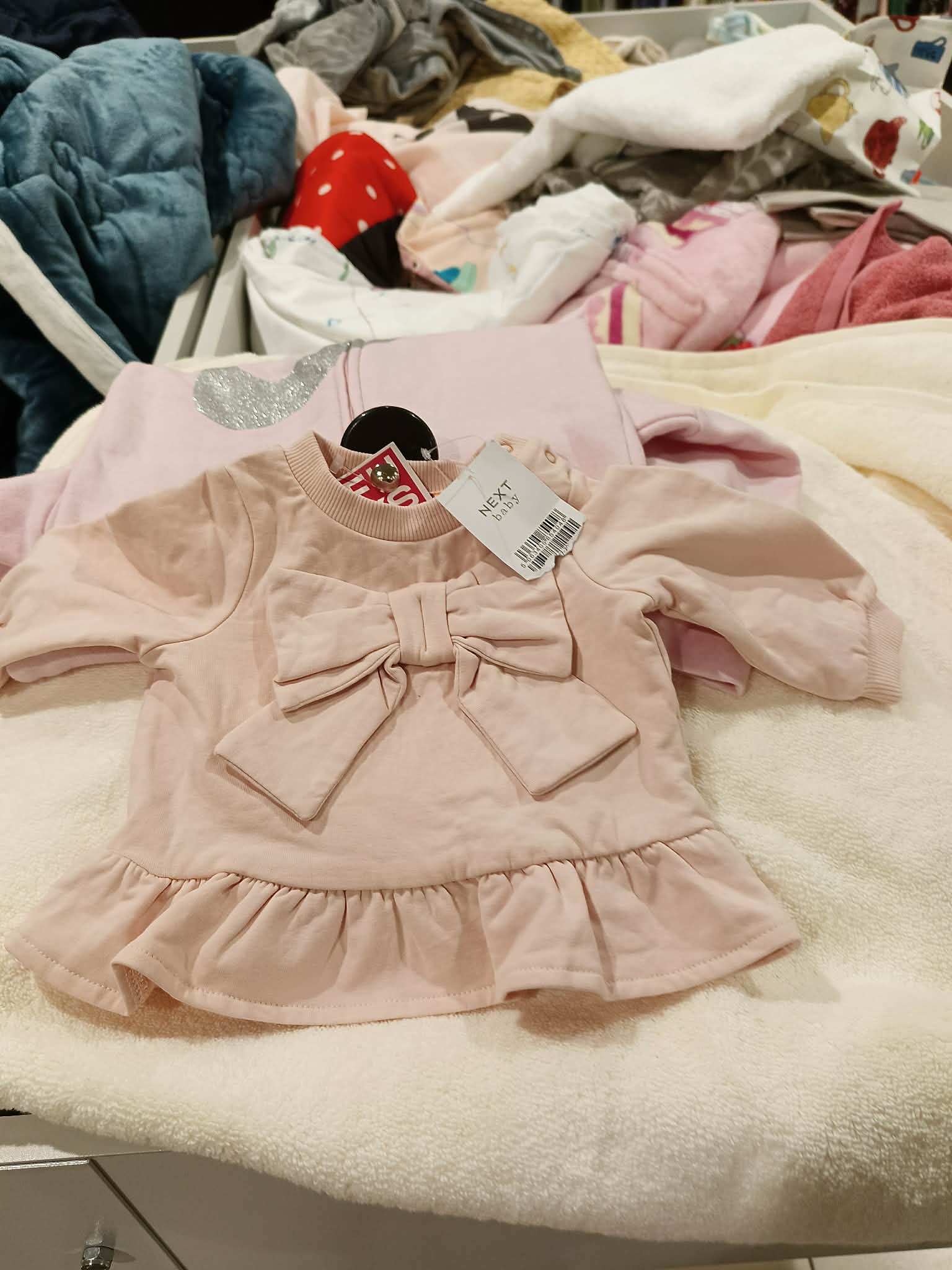 Mi mama dzisiaj upolowała fajne rzeczy w lumpie akurat na wycenę. Pajac dresowy stan idealny , bluza next nowa z metką , sukienka next też nowa , metki nie ma , ale majtki przyczepione jeszcze były.