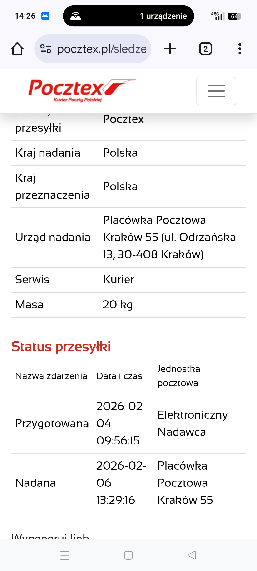 U mnie jakaś dziwna sytuacja mam nadaną paczkę Pocztex ale nie znam nadawcy